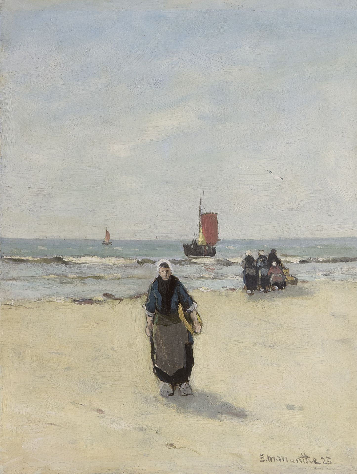 Morgenstjerne Munthe kunstwerk • schilderij • voorheen te koop Vissersvrouwen op het strand