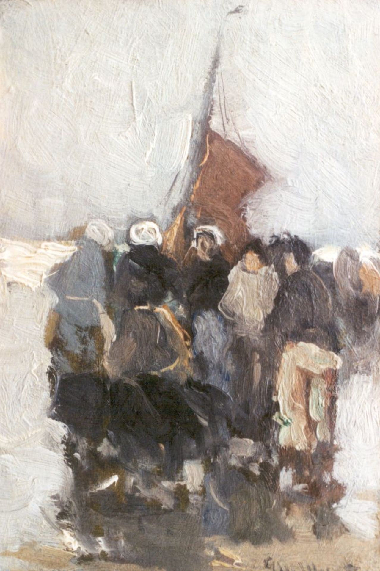 Morgenstjerne Munthe kunstwerk • schilderij • voorheen te koop Vissersvrouwen op het strand