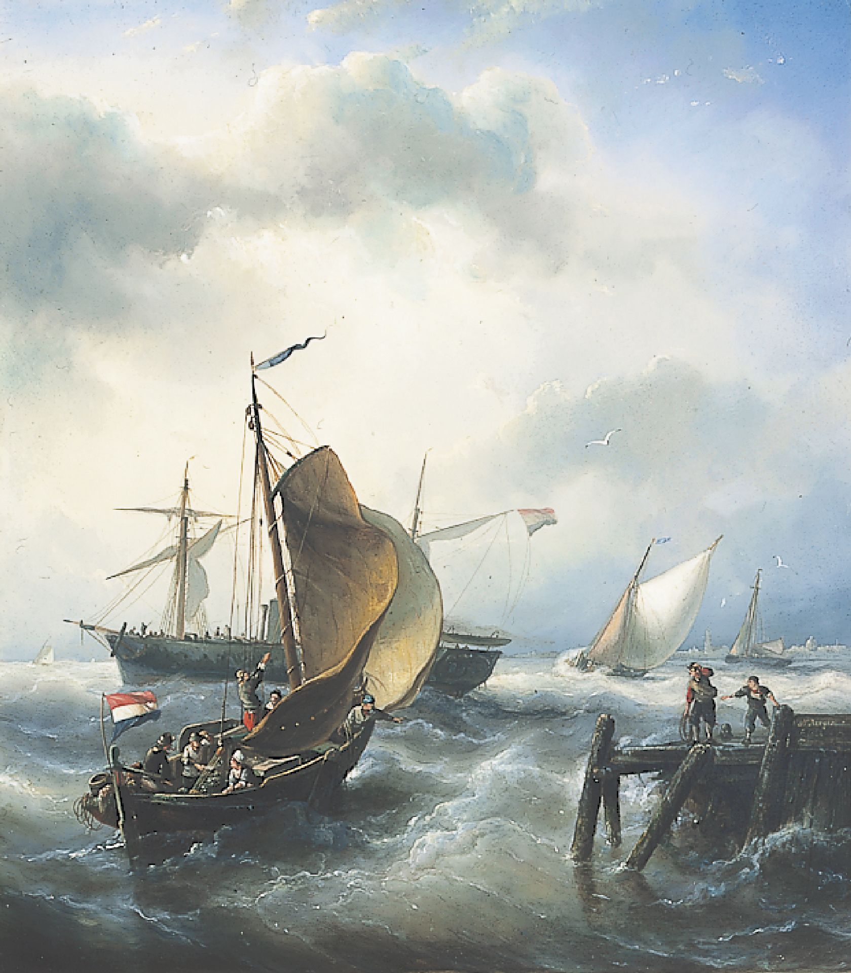Nicolaas Riegen kunstwerk • schilderij • voorheen te koop Laverende schepen in een storm