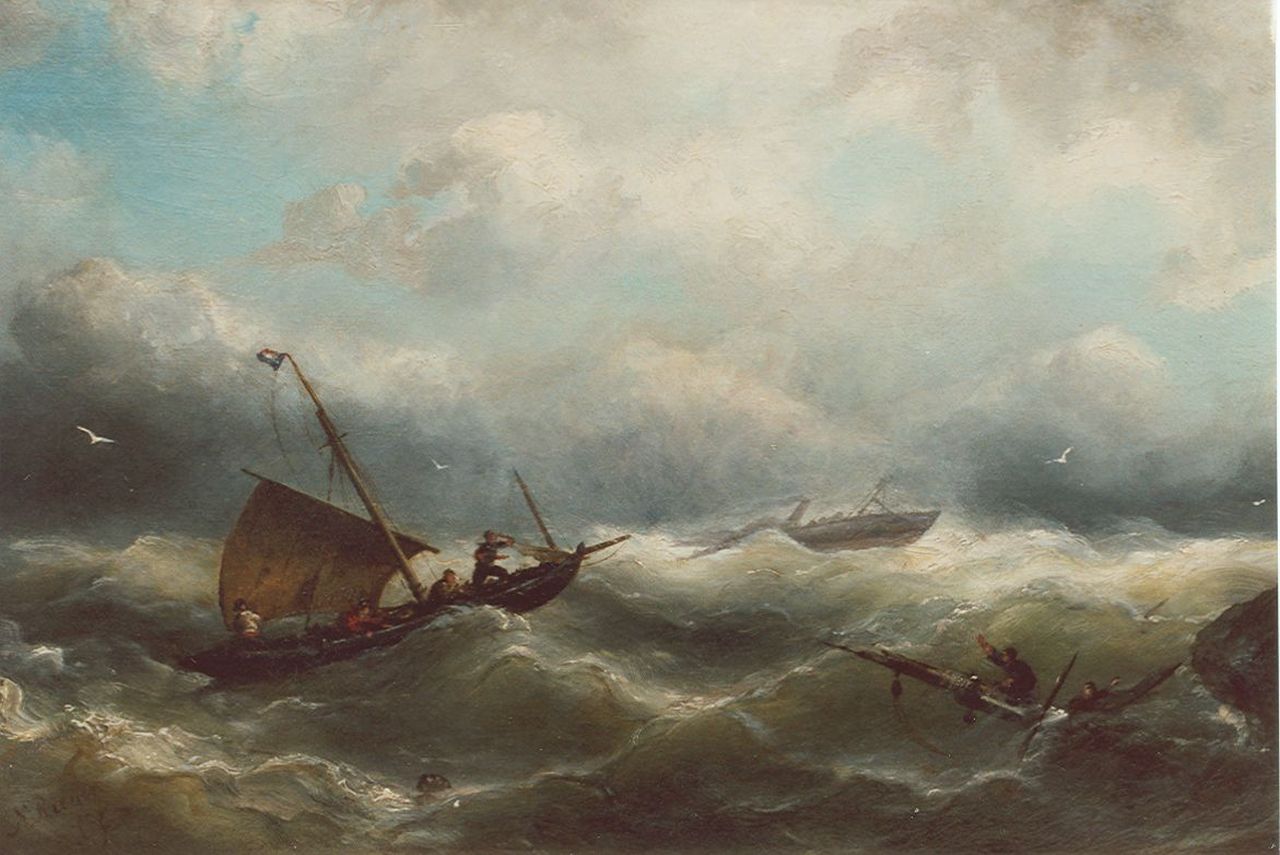 Nicolaas Riegen kunstwerk • schilderij • voorheen te koop Storm op zee