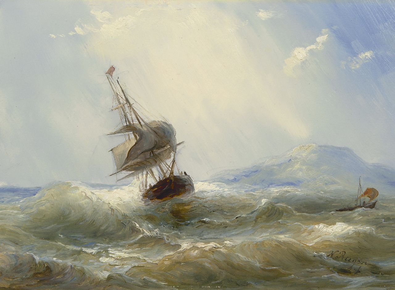 Nicolaas Riegen kunstwerk • schilderij • voorheen te koop Tweemaster op woelige zee