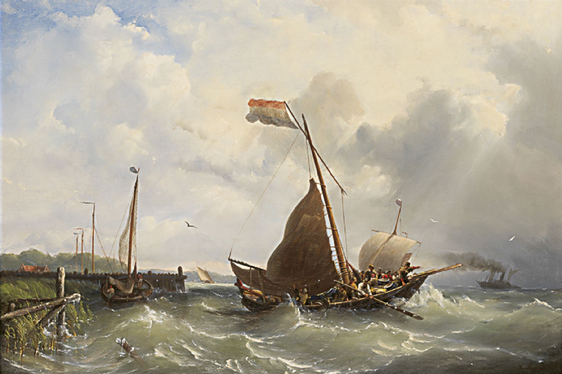 Nicolaas Riegen kunstwerk • schilderij • voorheen te koop Uitvarende zeilschepen en stoomboot