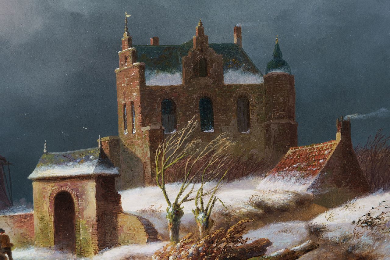 Nicolaas Roosenboom was een van de meest talentvolle leerlingen van de romantische landschapschilder Andreas Schelfhout. Dit is duidelijk te zien in zijn zomer- en wintergezichten. De lage horizon, aandacht voor verhalende details en balans tussen voor- en achtergrond nam hij van zijn leermeester over. De goede verkoop van zijn schilderijen stelde de schilder in staat om veel te reizen, o.a. door Duitsland, België, Schotland en Engeland. Ook werkte hij enige tijd samen met de Belgische veeschilder Eugène Verboeckhoven.