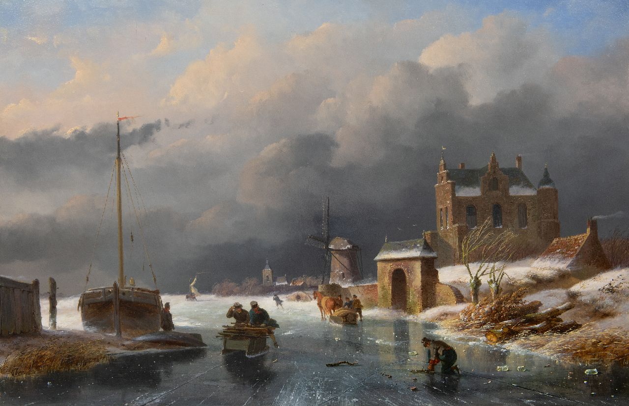 Nicolaas Roosenboom kunstwerk • schilderij • te koop IJsgezicht bij opkomende storm