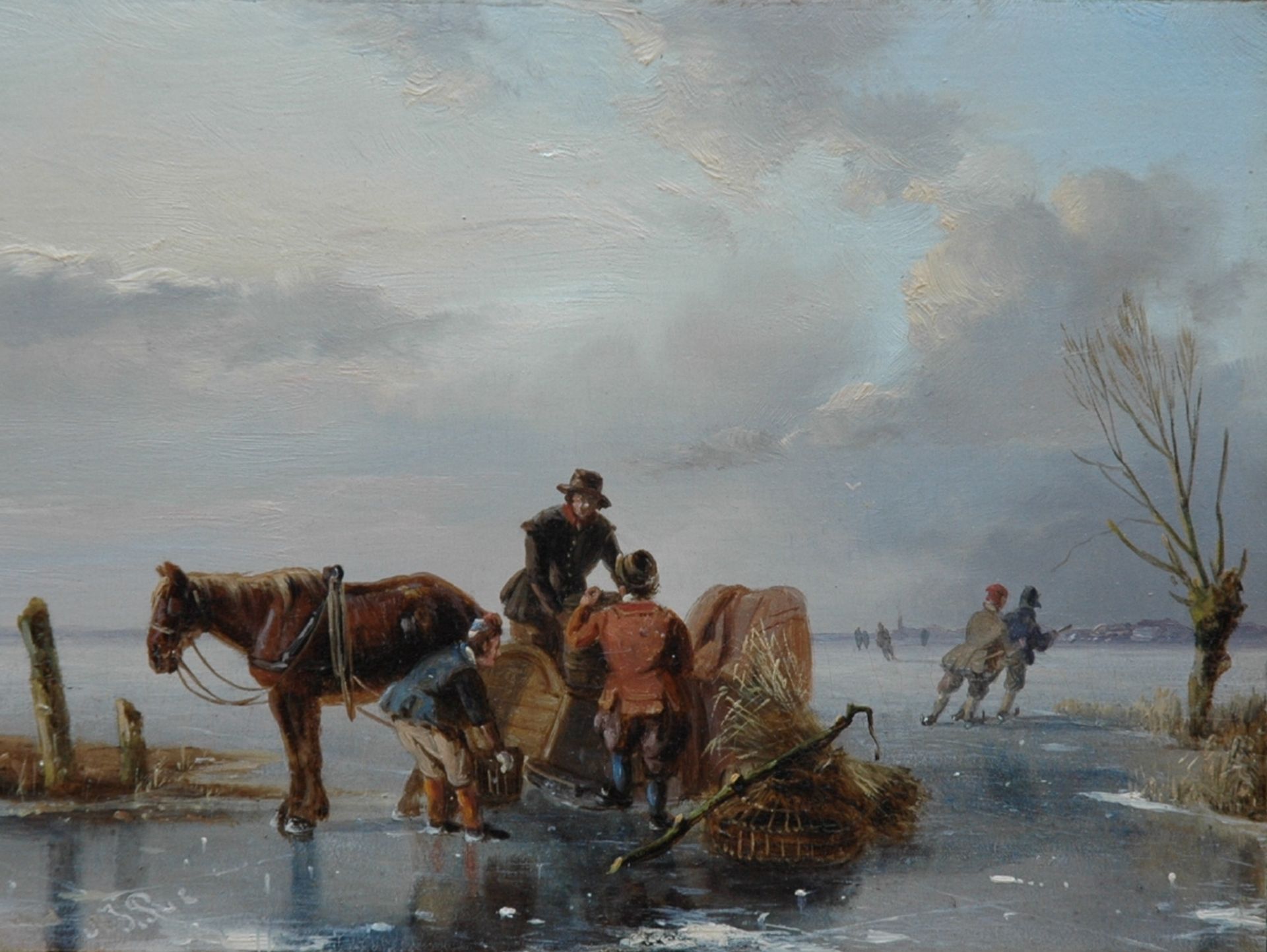 Nicolaas Roosenboom kunstwerk • schilderij • voorheen te koop IJsgezicht met schaatsers en paardenslee
