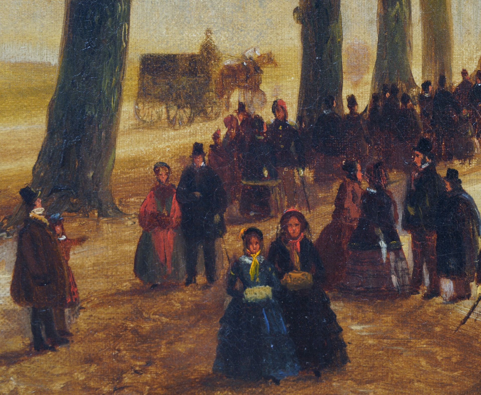 Nicolaas Roosenboom was een van de meest talentvolle leerlingen van de romantische landschapschilder Andreas Schelfhout. Dit is duidelijk te zien in zijn zomer- en wintergezichten. De lage horizon, aandacht voor verhalende details en balans tussen voor- en achtergrond nam hij van zijn leermeester over. De goede verkoop van zijn schilderijen stelde de schilder in staat om veel te reizen, o.a. door Duitsland, België, Schotland en Engeland. Ook werkte hij enige tijd samen met de Belgische veeschilder Eugène Verboeckhoven.