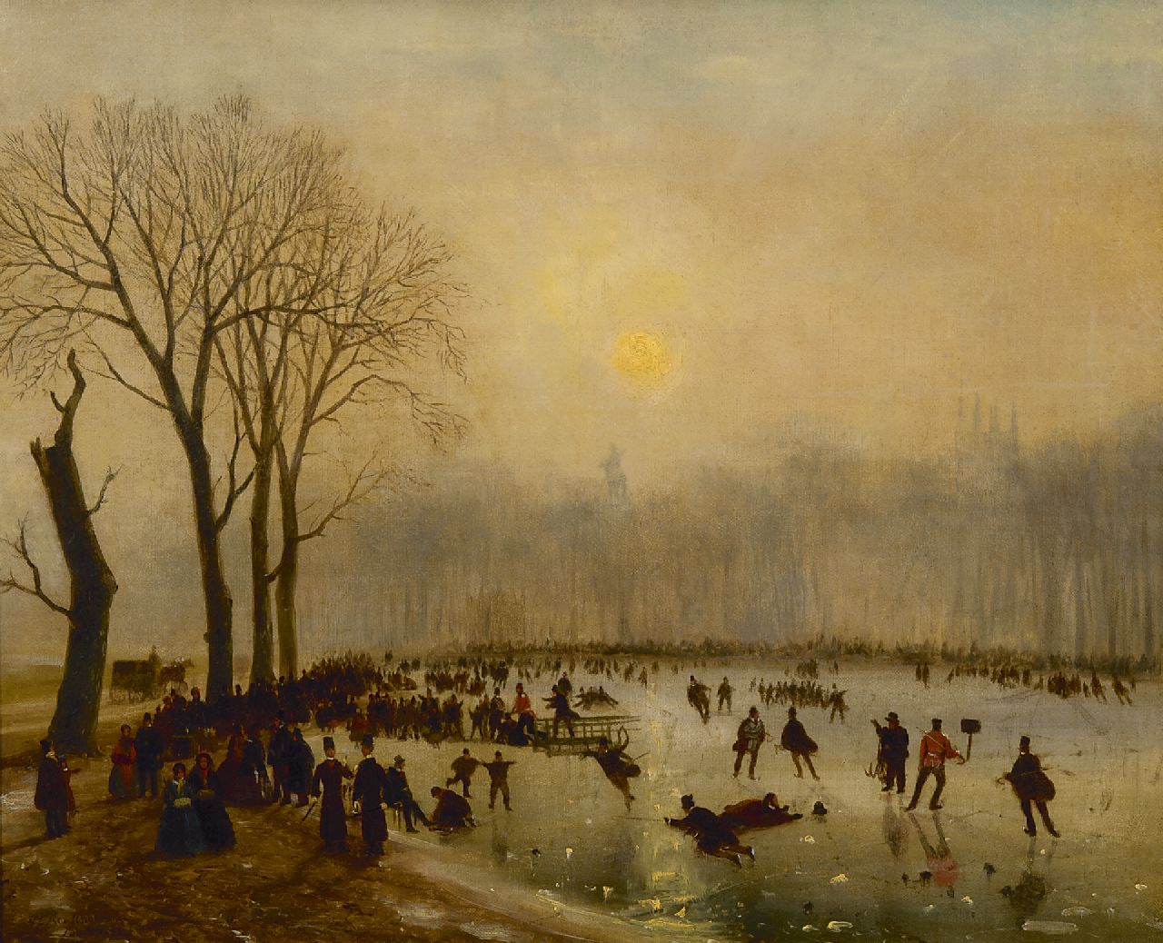 Nicolaas Roosenboom kunstwerk • schilderij • te koop Schaatspret op The Serpentine, Hyde Park