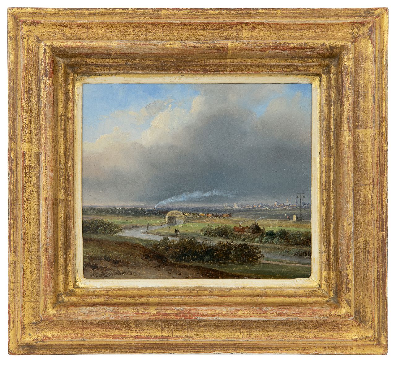 Nicolaas Roosenboom kunstwerk • schilderij • te koop Stoomtrein in panoramisch landschap