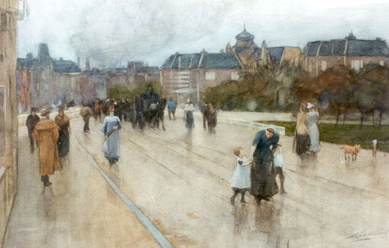 Nicolaas van der Waay kunstwerk • aquarel • tekening • voorheen te koop De middagwandeling