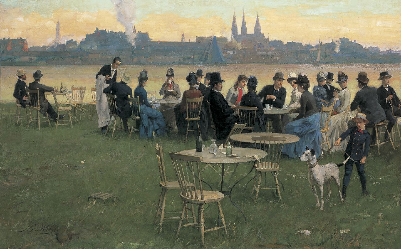 Nicolaas van der Waay kunstwerk • schilderij • voorheen te koop Een zomeravond bij het Tolhuis, Amsterdam