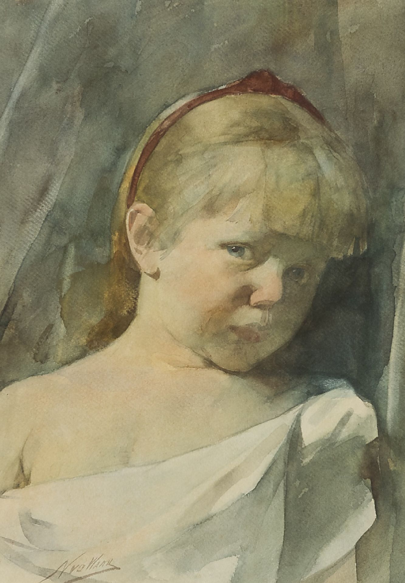 Waay N. van der | Nicolaas van der Waay | Aquarellen en tekeningen te koop aangeboden | Meisjesportret, aquarel op papier 49,5 x 34,3 cm, gesigneerd linksonder
