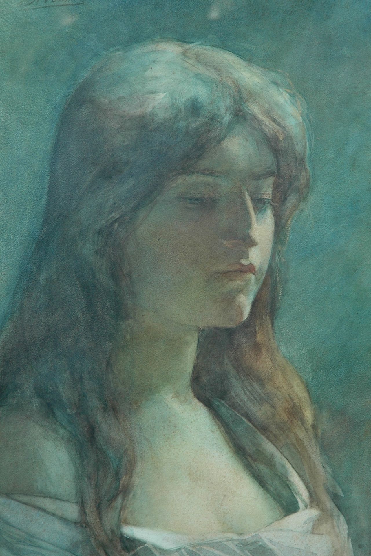 Nicolaas van der Waay kunstwerk • aquarel • tekening • voorheen te koop Portret van jonge vrouw met los haar