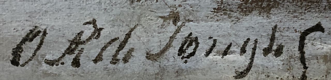 De stadsgezichten van Oene Romkes de Jongh vertonen alle kenmerken van het romantische Hollandse stadsgezicht zoals dat in de 19e eeuw in Amsterdam vorm kreeg: de nauwkeurige uitwerking, de levendige stoffering en de aandacht voor oude, Hollandse architectuur. Van de schilder zelf is niet veel bekend. Hij werd in 1812 in Makkum geboren en woonde en werkte vermoedelijk het grootste deel van zijn leven in Amsterdam. Daar werd hij vooral geïnspireerd door het werk van tijdgenoot Cornelis Springer en diens leerling Adrianus Eversen. Het oeuvre van de schilder omvat sfeervolle stadsgezichten bij zomer en winter, onder andere van Amsterdam en de Zuiderzeehavens, en enkele landschappen.