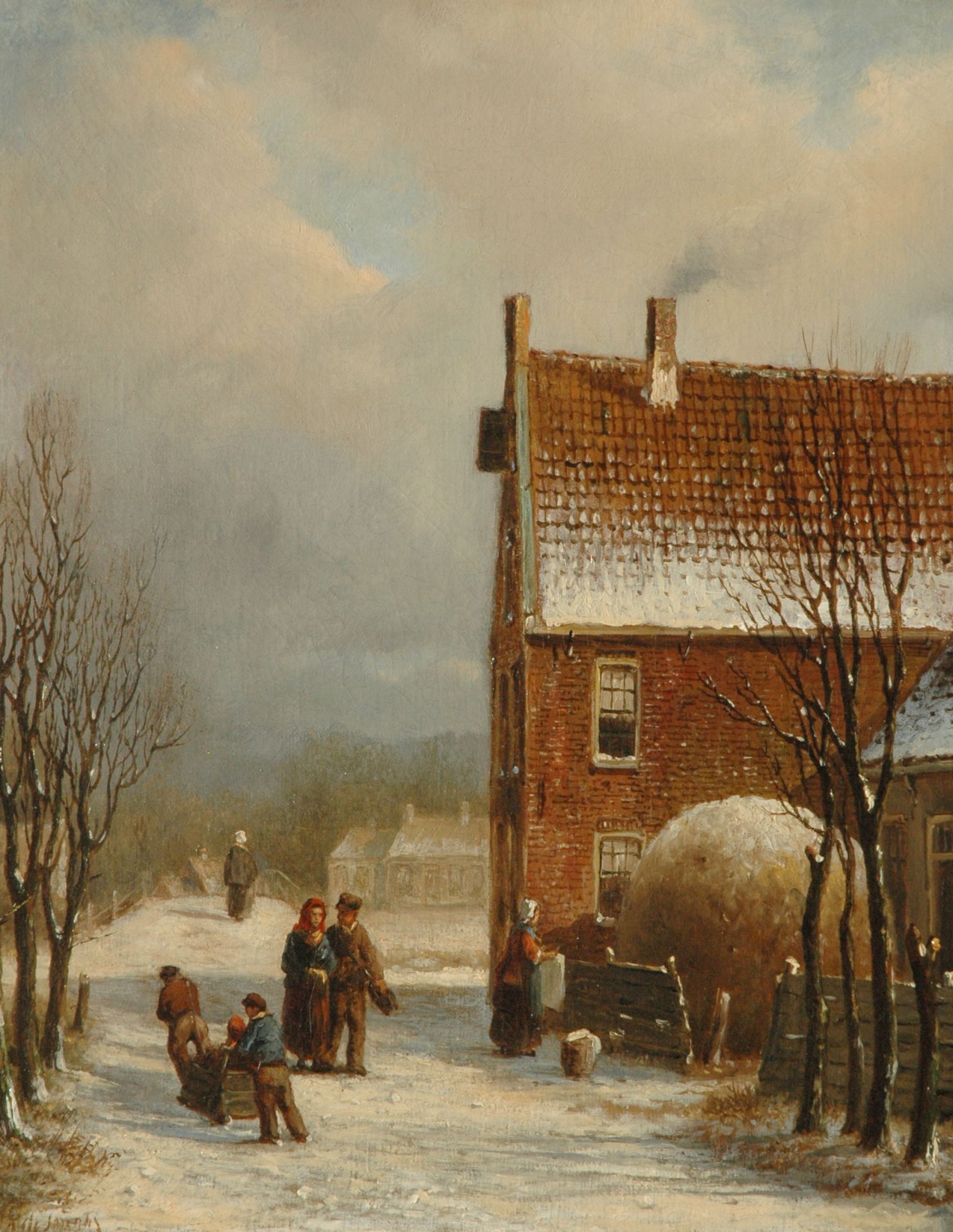 Oene Romkes de Jongh kunstwerk • schilderij • voorheen te koop Stadsgezicht in de sneeuw