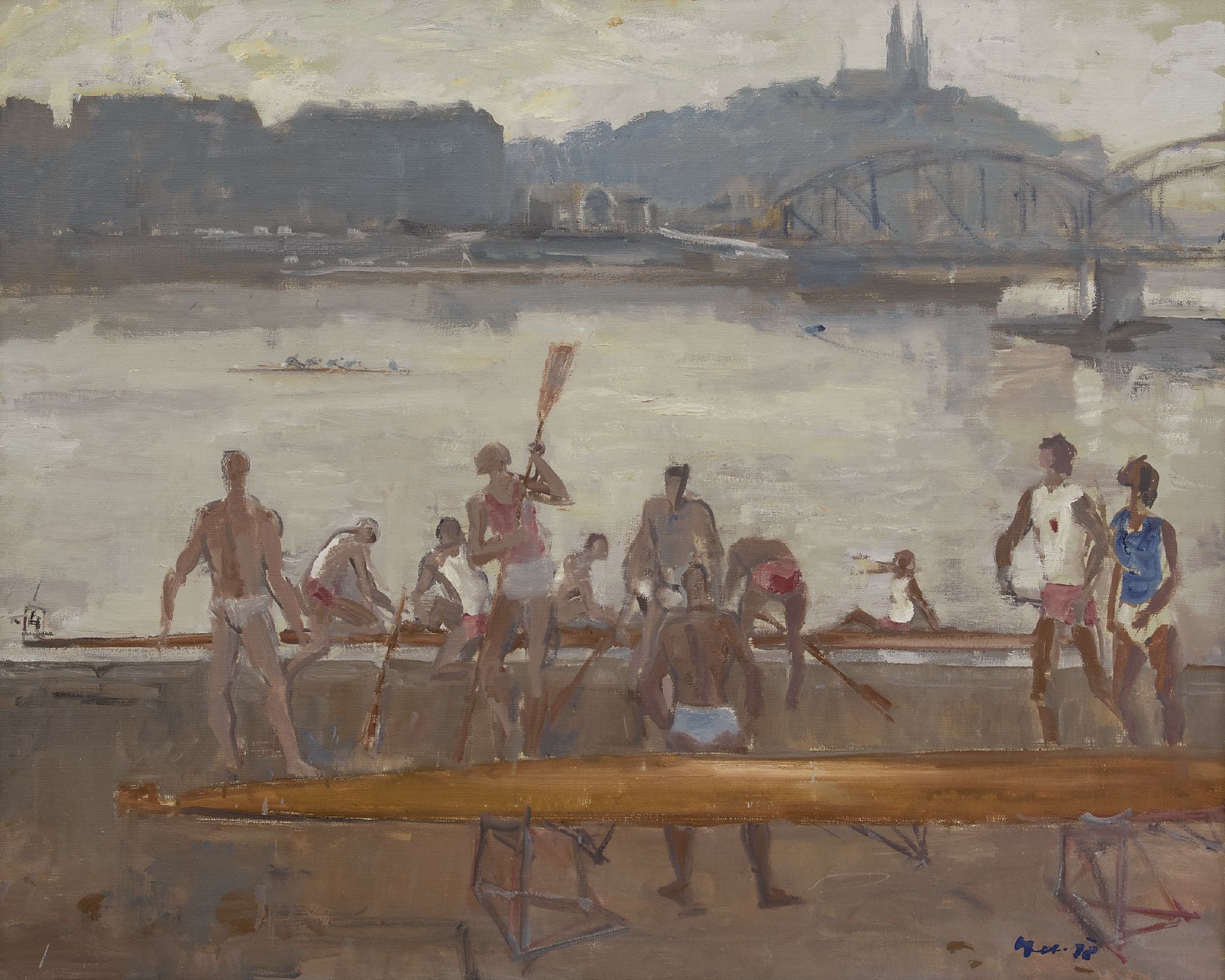 Oldřich Oplt kunstwerk • schilderij • te koop Voor de roeiwedstrijd, Praag