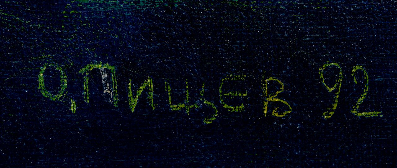 olieverf op doek 90,0 x 80,0 cm, gesigneerd linksonder en verso en gedateerd '92