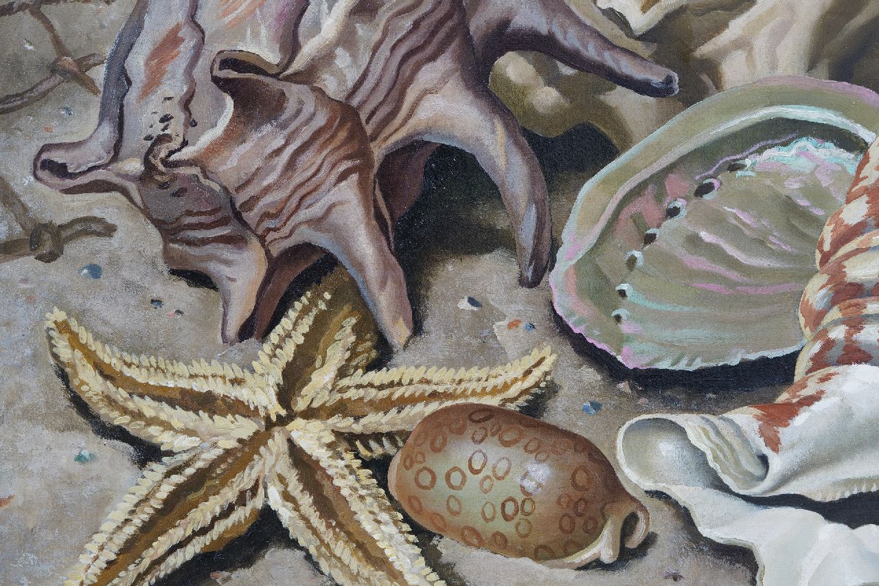 Omer van de Weyer kunstwerk • schilderij • te koop Stilleven met exotische schelpen