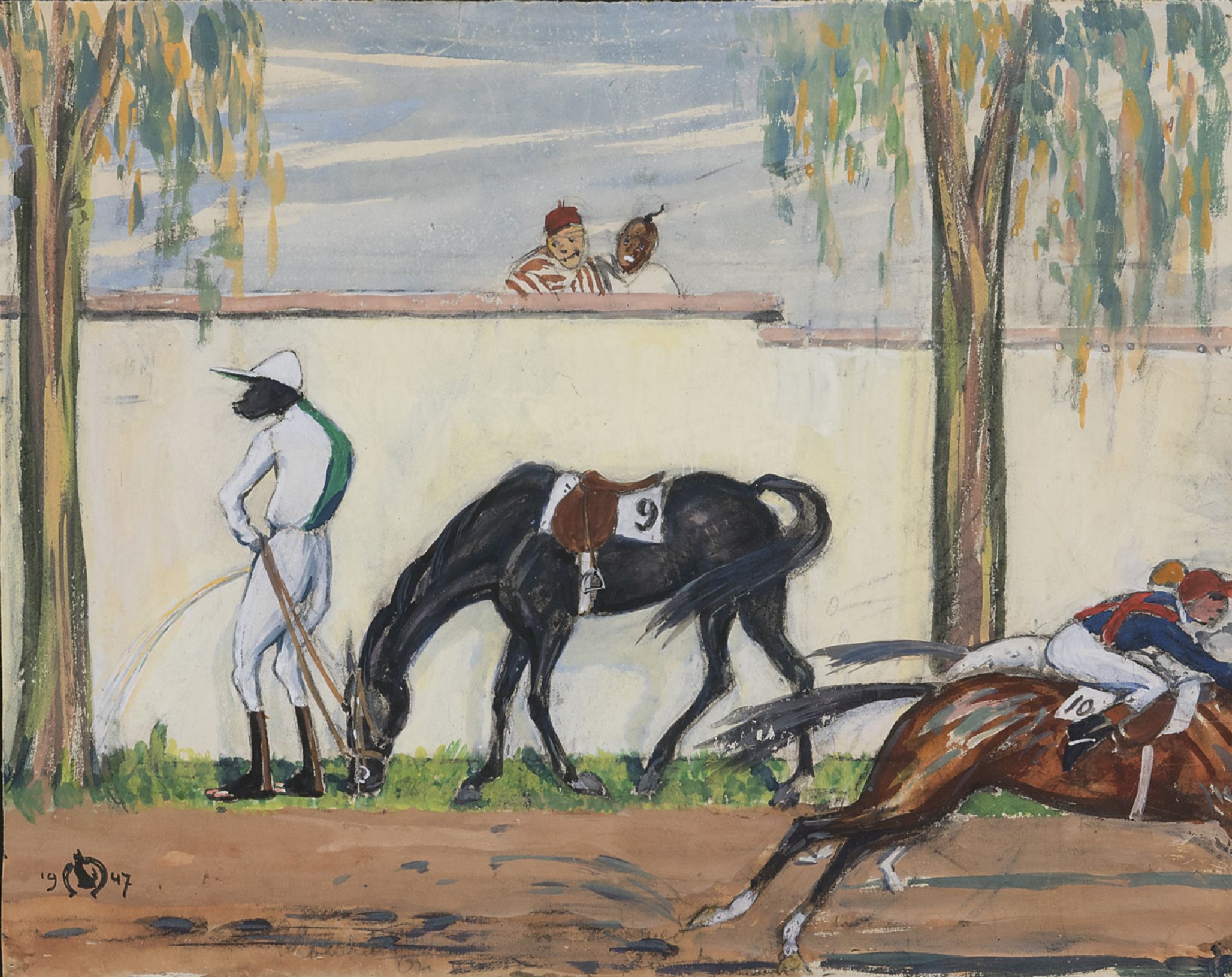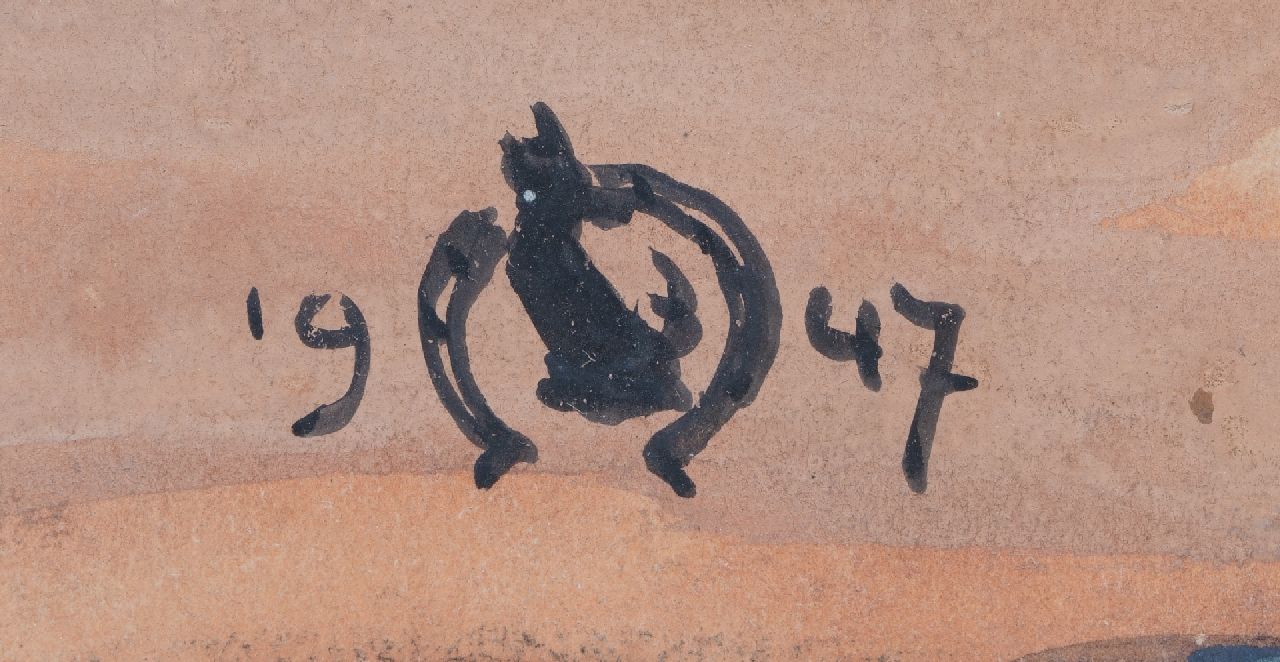 gouache op papier 35,5 x 45,3 cm, gesigneerd linksonder en gedateerd 1947