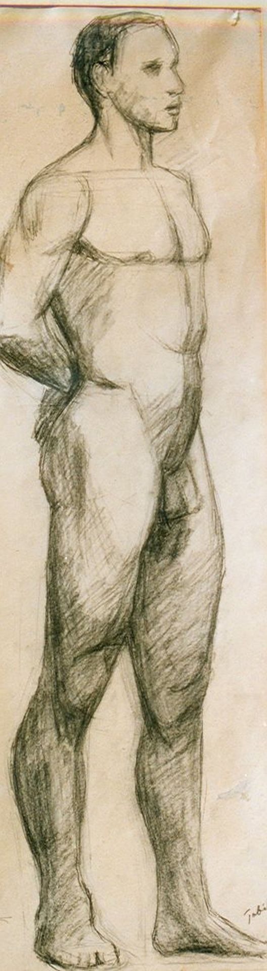 Onbekend kunstwerk • aquarel • tekening • te koop Naaktstudie van staande man