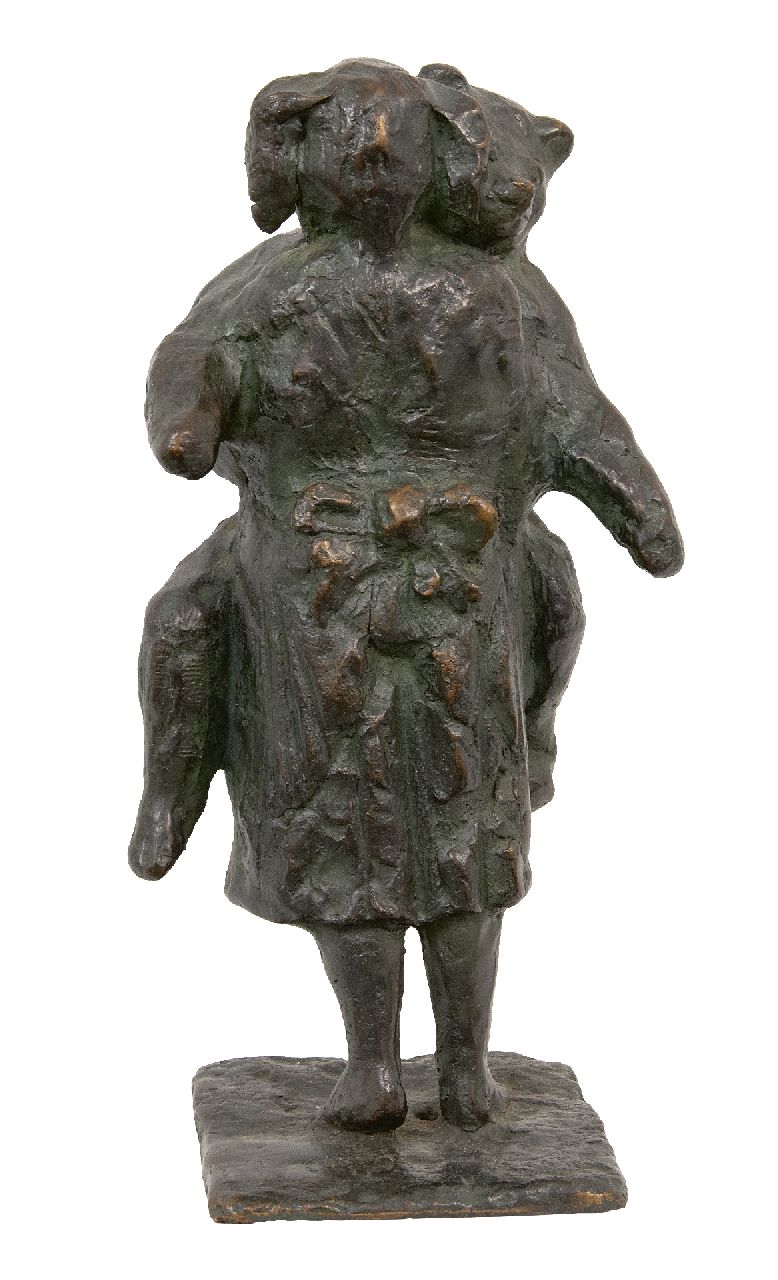Onbekend 20e eeuw  | Onbekend, Meisje met teddybeer, brons 43,5 x 20,5 cm
