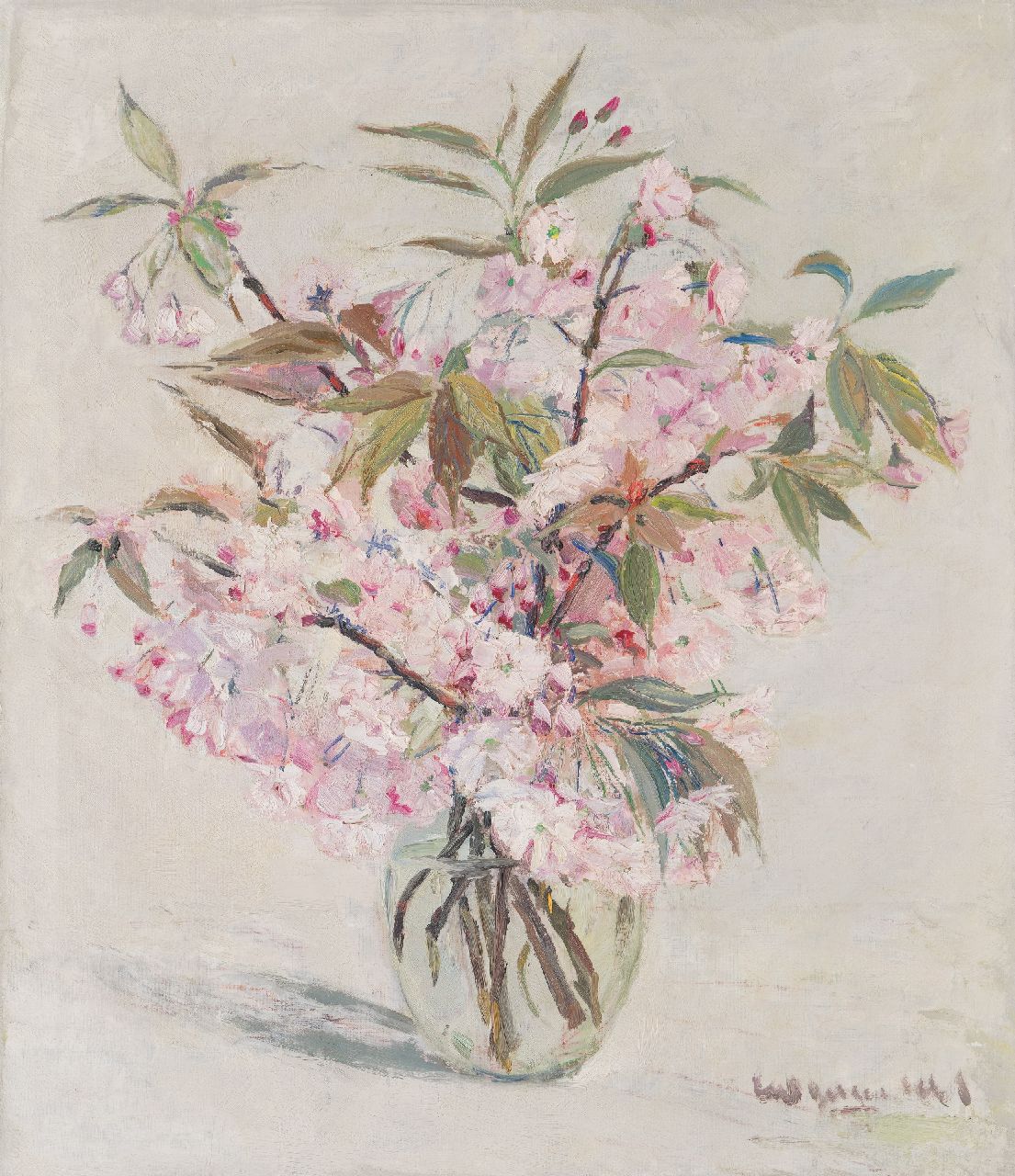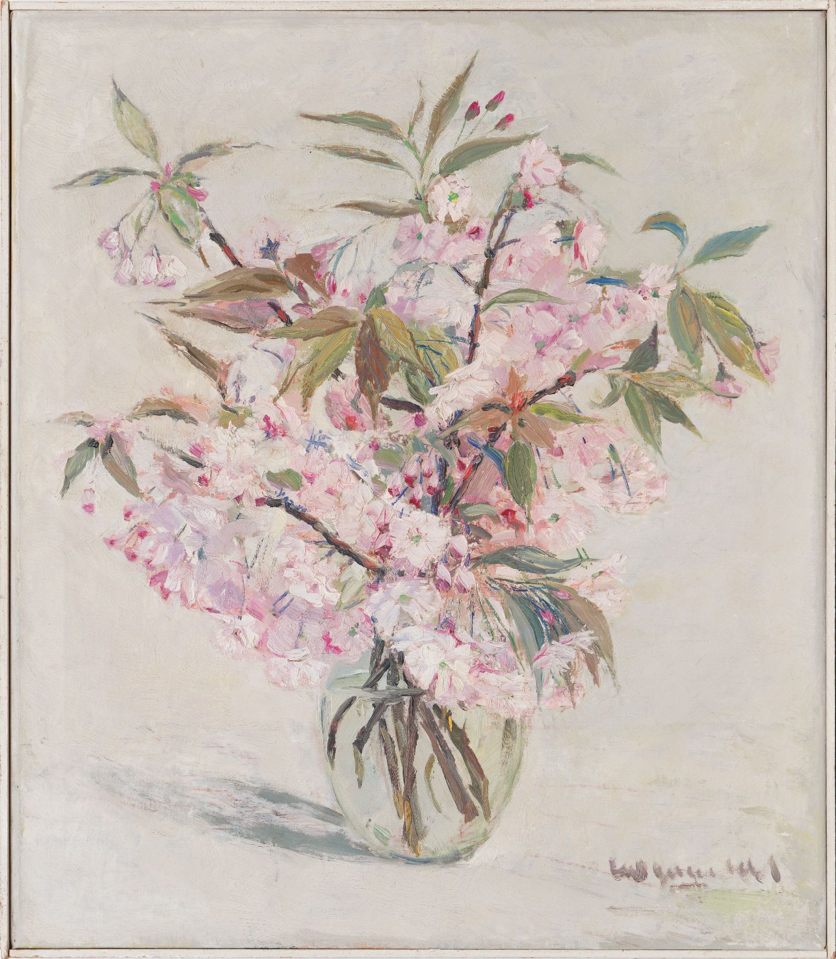 Onbekend kunstwerk • schilderij • te koop Bloesemtakken in glazen vaas