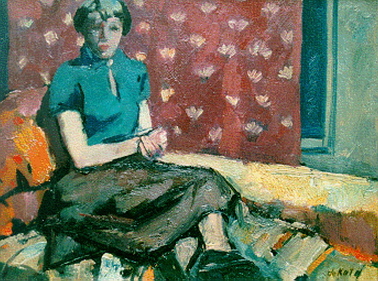 Otto B. de Kat kunstwerk • schilderij • voorheen te koop Jonge vrouw in groene blouse