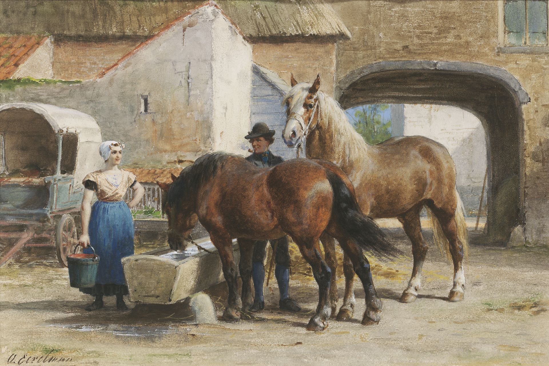 Otto Eerelman kunstwerk • aquarel • tekening • voorheen te koop De favoriete drinkplaats