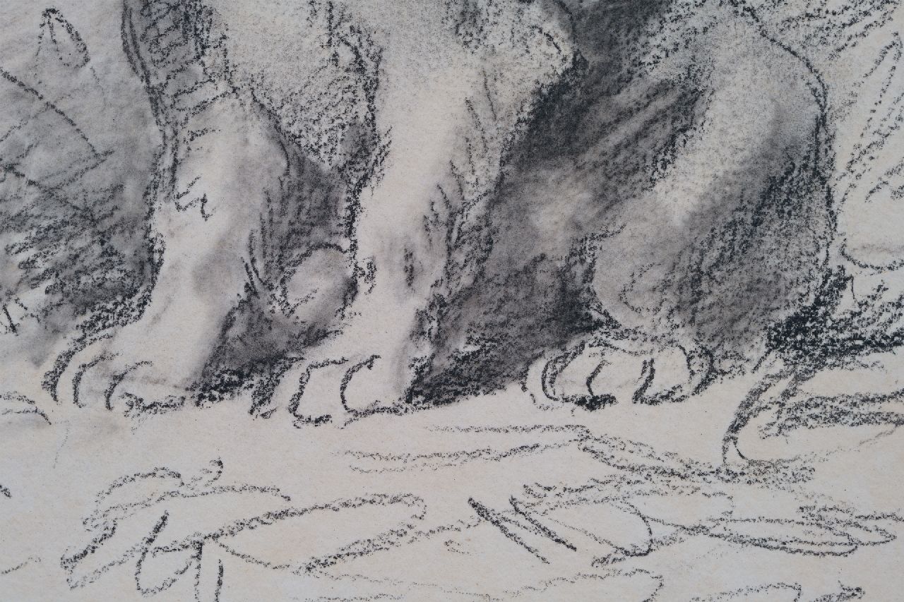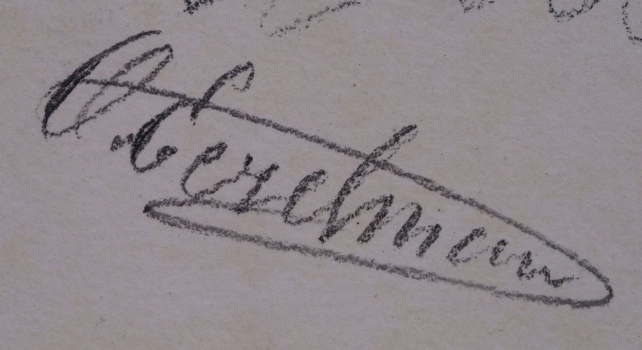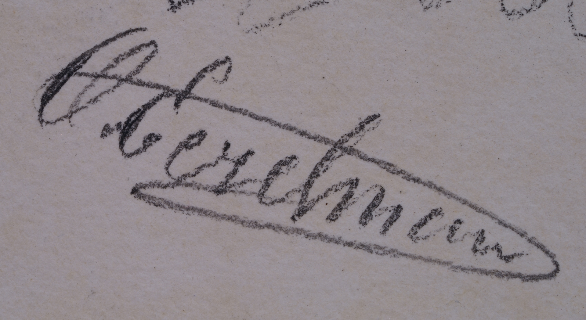zwart krijt en aquarel op papier 24,8 x 17,7 cm, gesigneerd linksonder