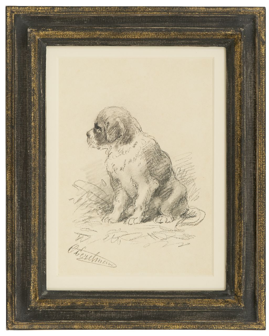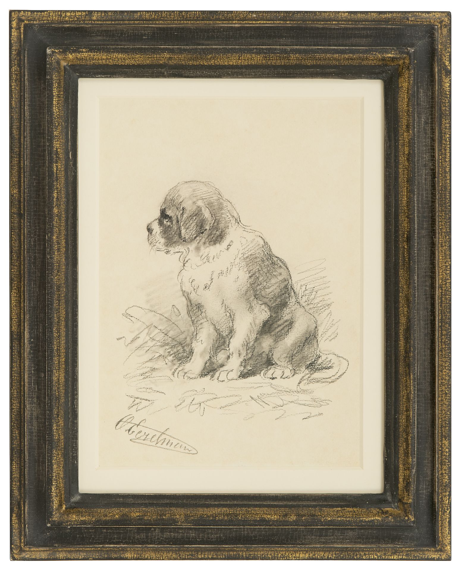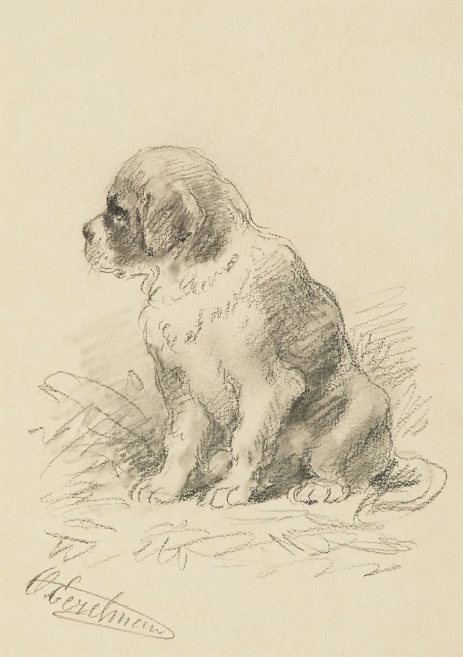 Otto Eerelman kunstwerk • aquarel • tekening • voorheen te koop Sint-Bernard pup