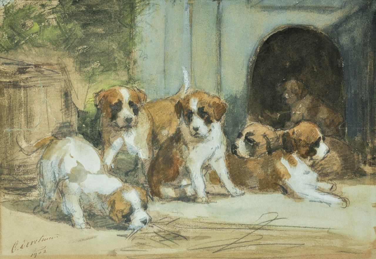 Otto Eerelman kunstwerk • aquarel • tekening • voorheen te koop Sint-Bernard pups