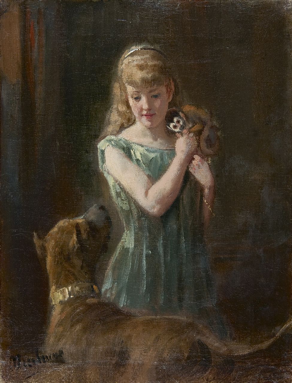 Otto Eerelman kunstwerk • schilderij • voorheen te koop Meisje met aapje en hond