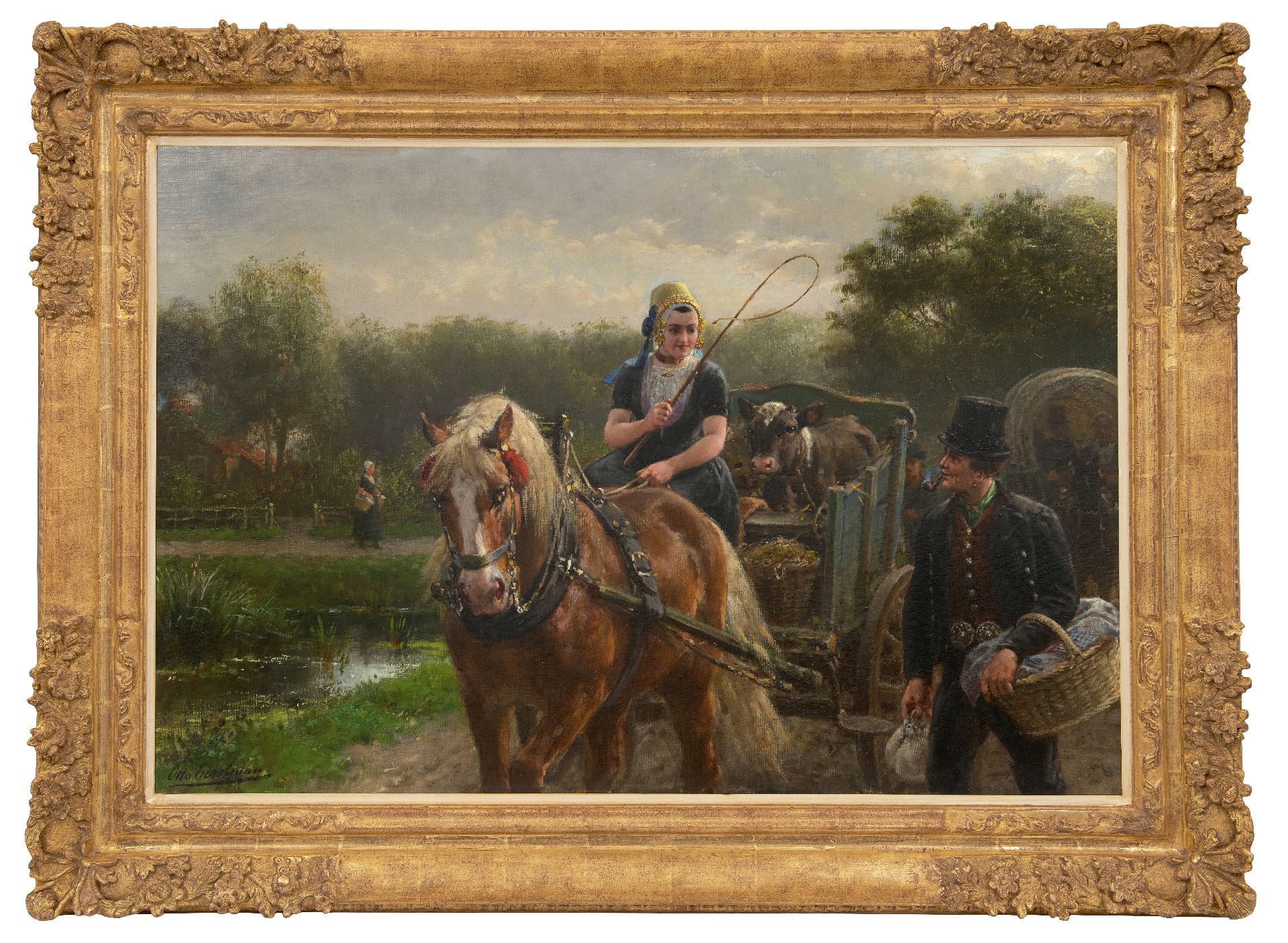 Otto Eerelman kunstwerk • schilderij • voorheen te koop Ontmoeting op weg naar de markt op Walcheren