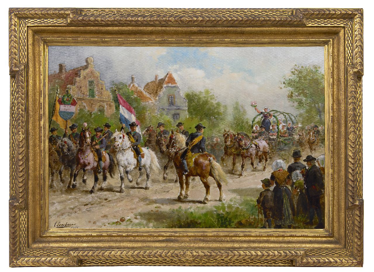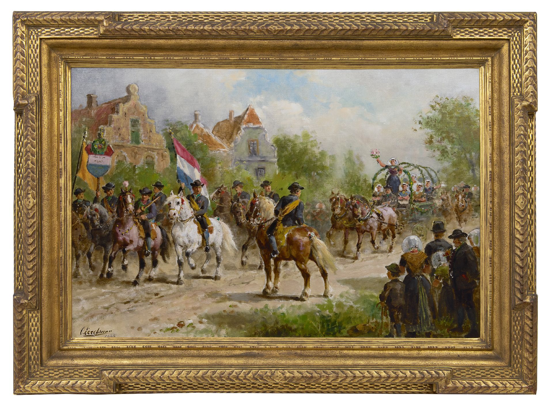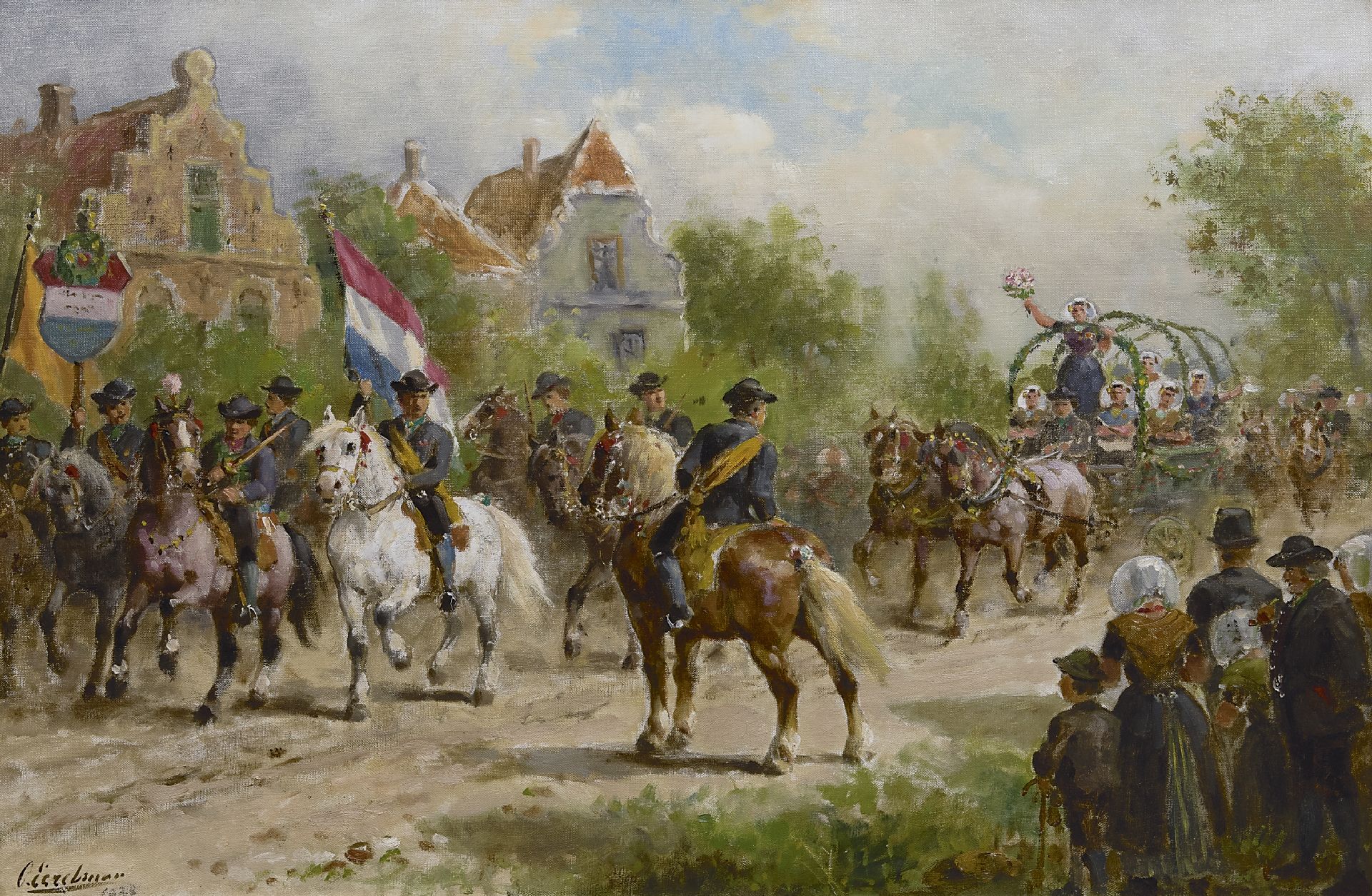 Otto Eerelman kunstwerk • schilderij • voorheen te koop Optocht van boeren en boerinnen na een ringstekerij in Oudelande, Zuid-Beveland