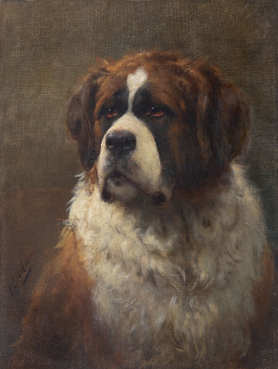Otto Eerelman kunstwerk • schilderij • voorheen te koop Portret van een Sint-Bernard
