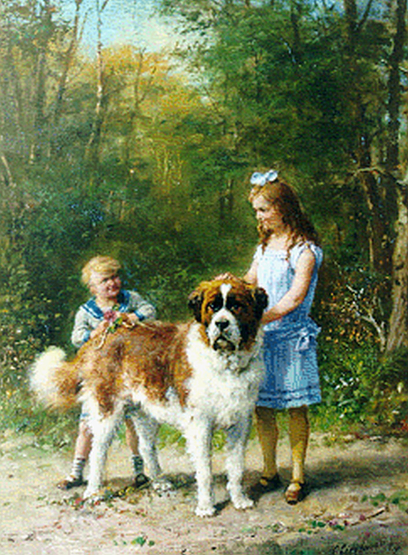 Otto Eerelman kunstwerk • schilderij • voorheen te koop Sint-Bernard hond met kinderen