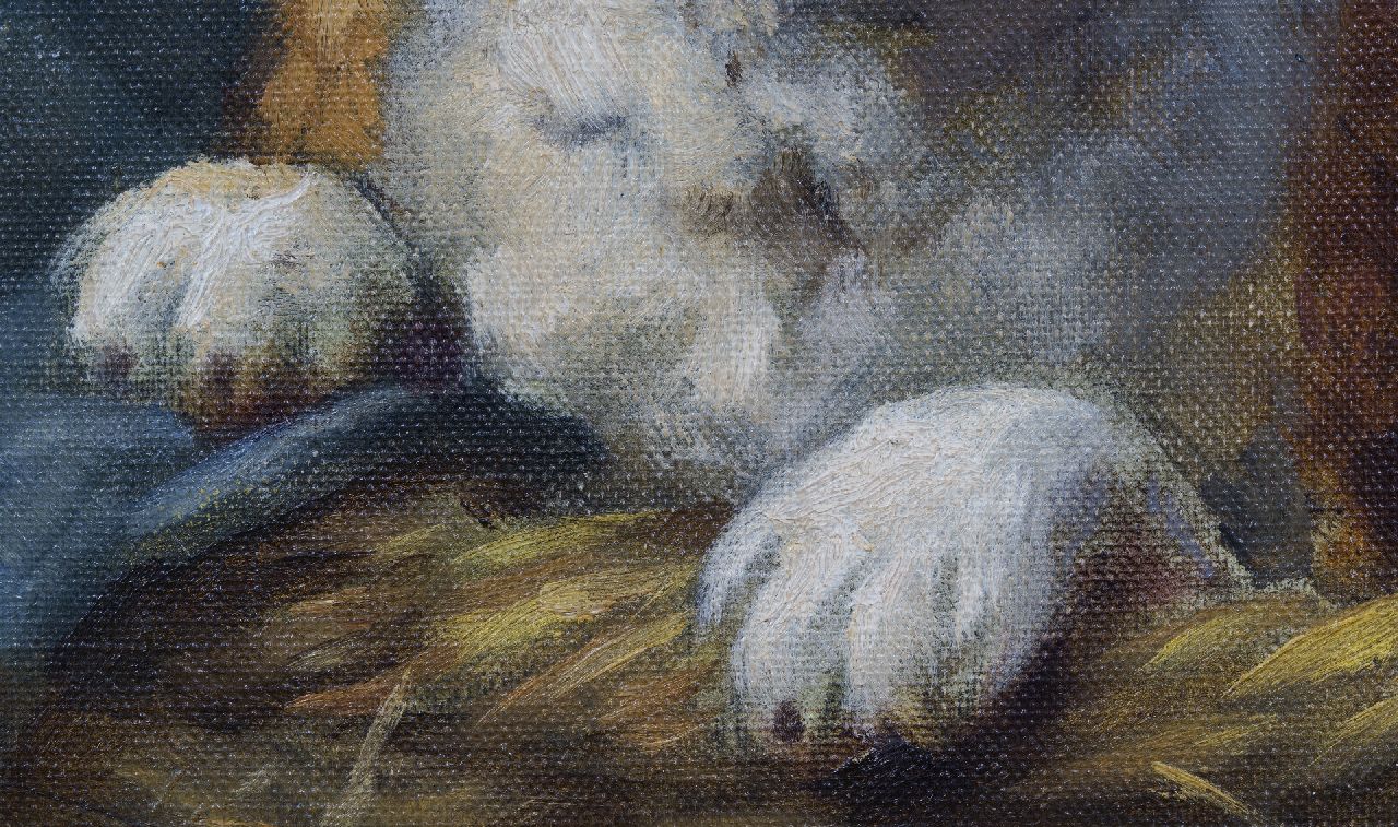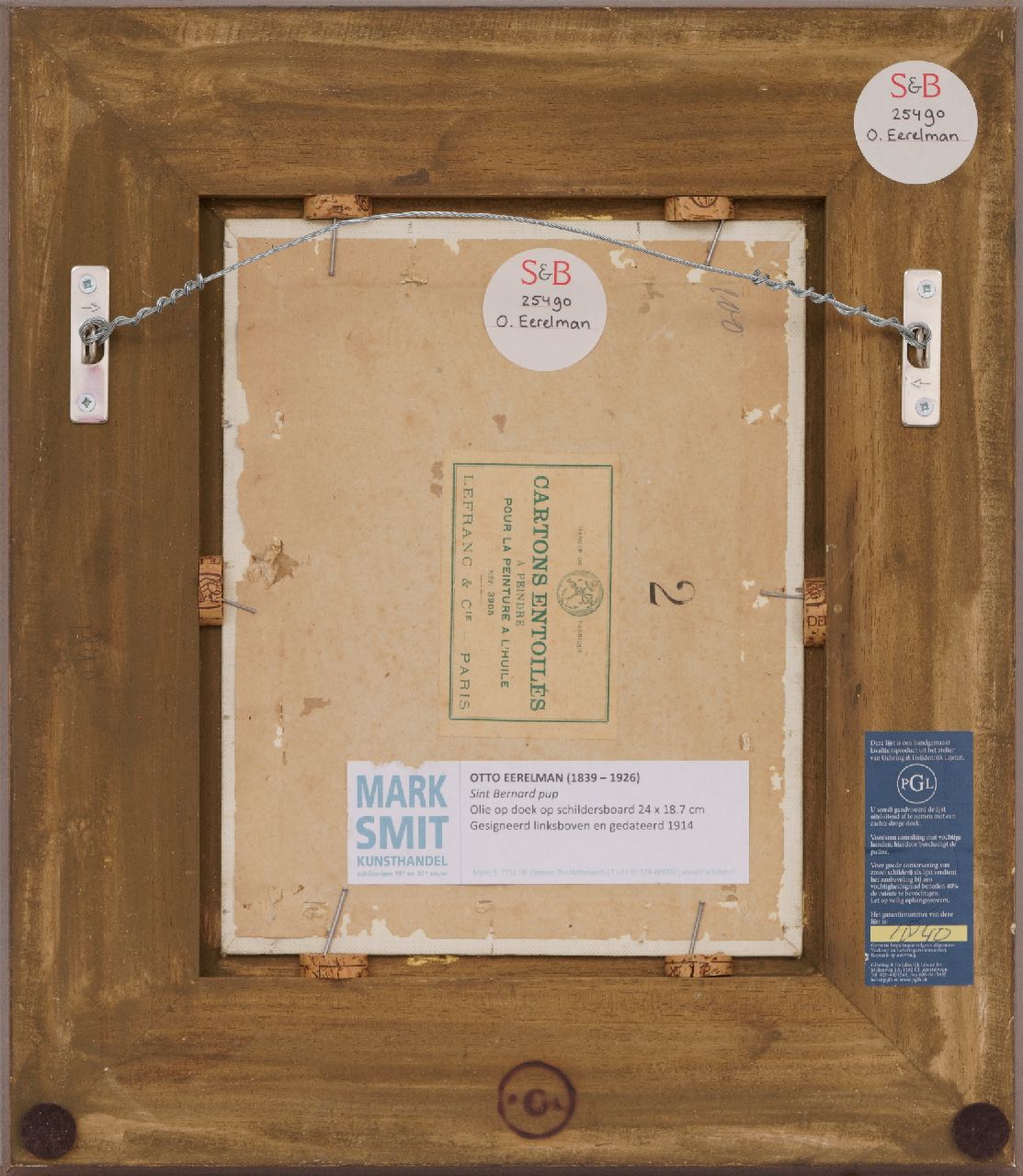 Otto Eerelman kunstwerk • schilderij • te koop Sint-Bernard pup in z'n mandje