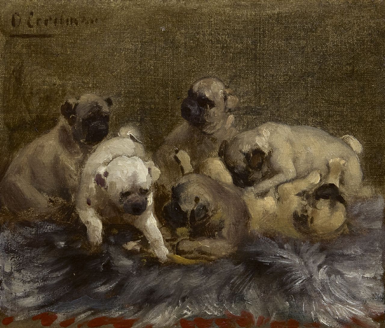 Otto Eerelman kunstwerk • schilderij • voorheen te koop Spelende pups
