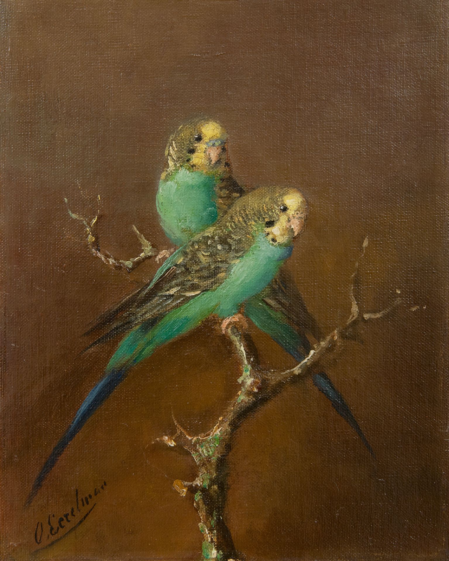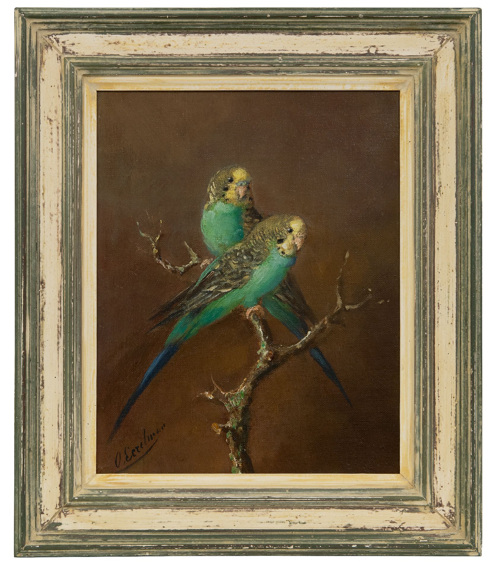 Otto Eerelman kunstwerk • schilderij • voorheen te koop Twee grasparkieten