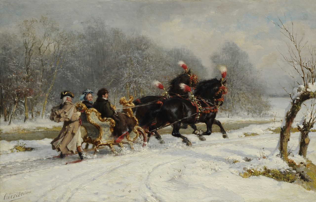 Otto Eerelman kunstwerk • schilderij • voorheen te koop Uit rijden in de arrenslee