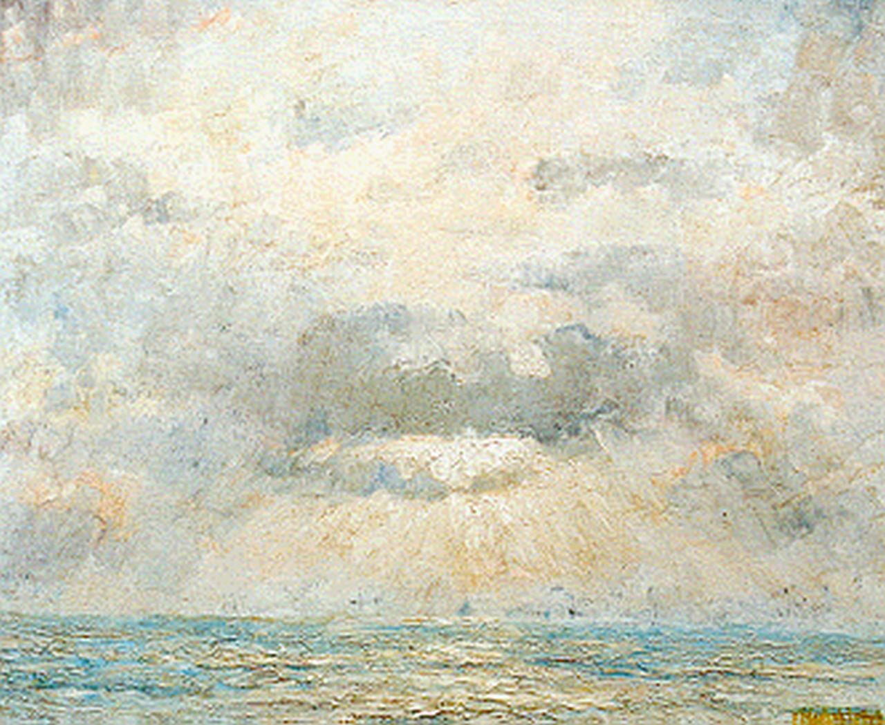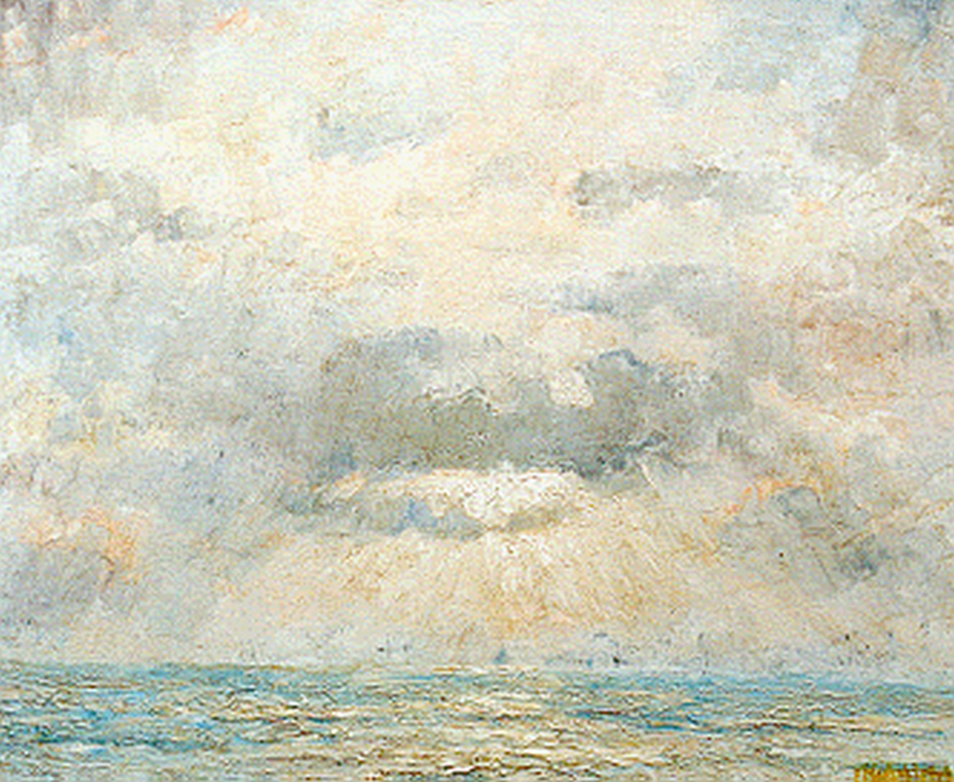 P.E.A. Mansvelt Beck kunstwerk • schilderij • voorheen te koop Avondlucht boven zee