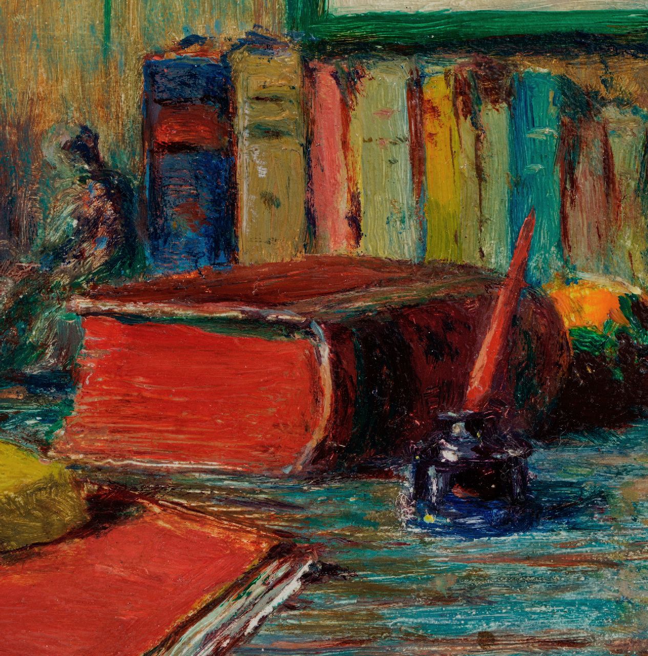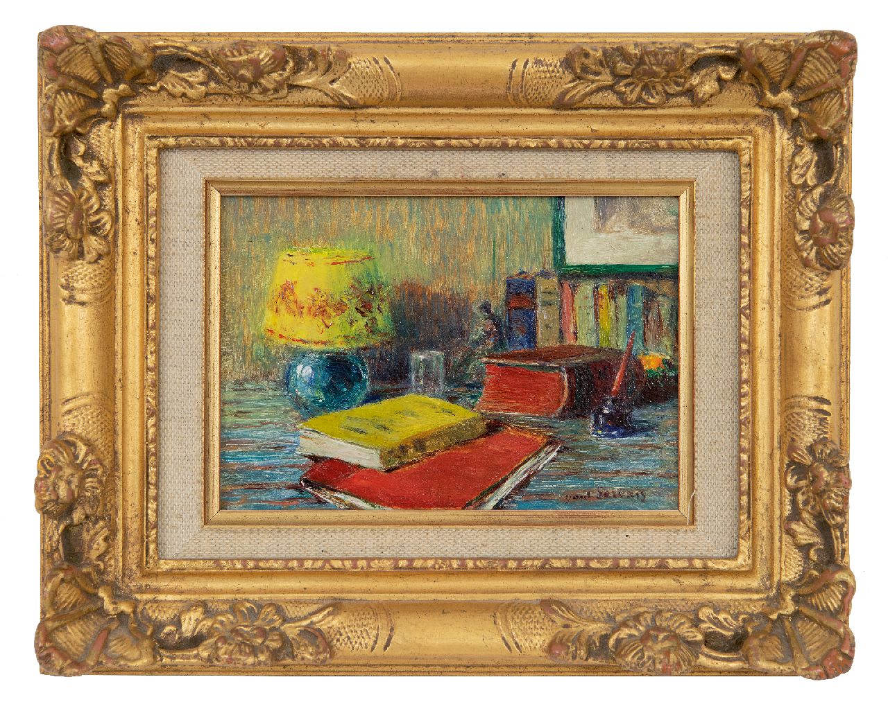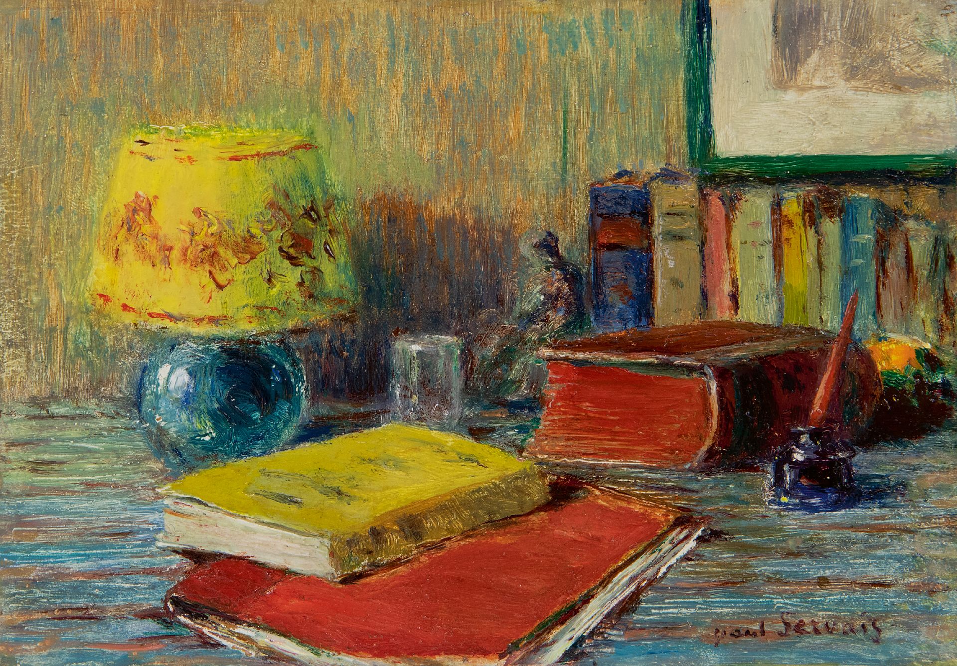 Paul Jean Louis Gervais kunstwerk • schilderij • voorheen te koop Stilleven met boeken en lamp