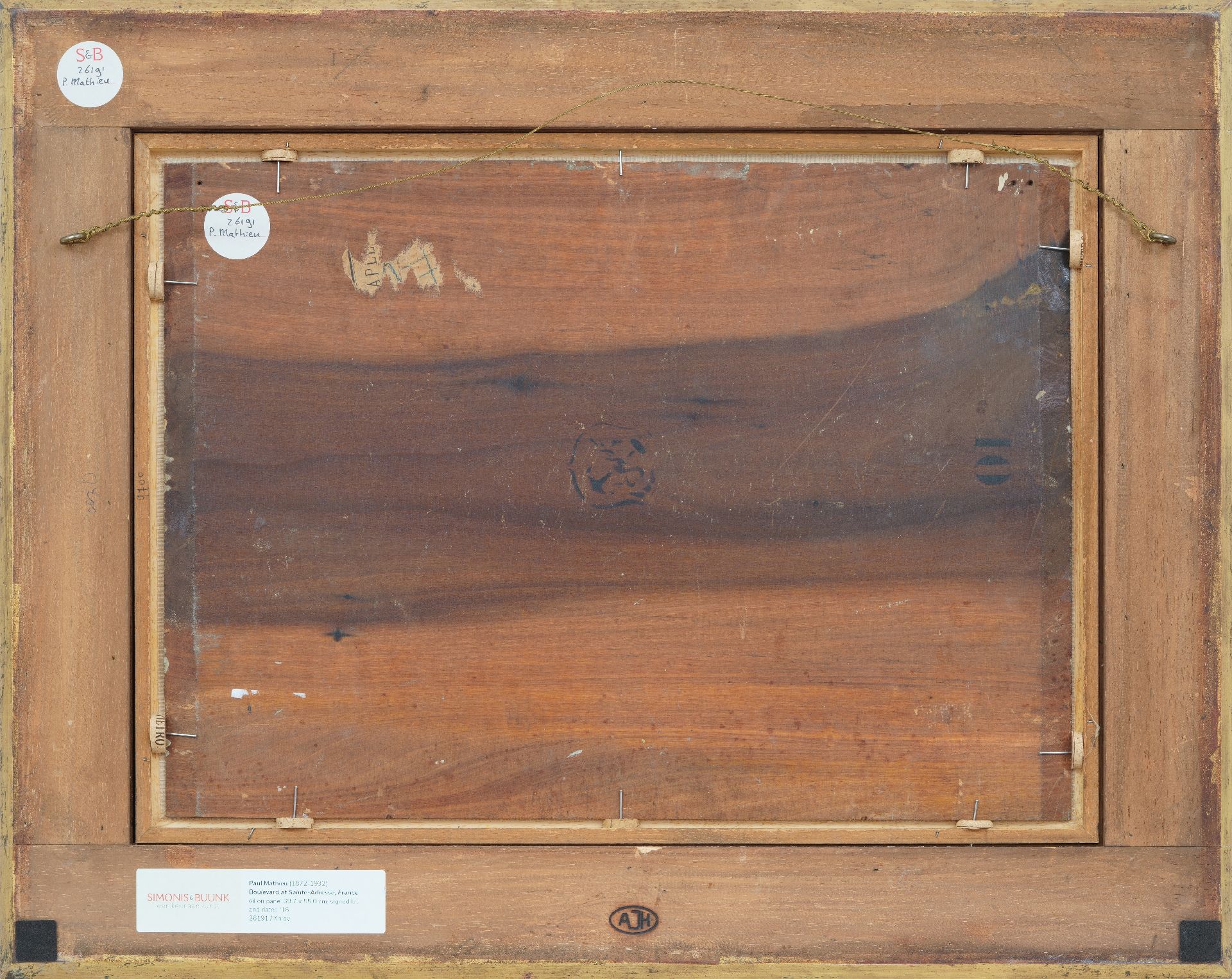 Paul Mathieu was een Belgische kunstschilder en aquarellist die vooral bekend werd met zijn landschappen, stads- en havengezichten. HIj werkte veel in de Kempen en aan de Belgische kust. Daarnaast schilderde hij ook interieurs en stillevens. Door de prachtige post-impressionistische weergave van het licht en het gebruik van parelwit dat zijn werk een ‘zachte’ uitdrukking verleende genoot hij grote bekendheid. Na het doorlopen van de École Normale d'Art te Brussel, waar hij een tekenopleiding volgde en en hout leerde marmeren, werd hij docent aan de Academie van Brussel, tot zijn dood in 1932. Met zijn vriend, de schilder Alfred Bastien sloot hij zich aan bij de Brusselse kunstkring ‘Le Sillon’, die zich afzette tegen elke vorm van kunst eindigend op - isme. Tijdens de Eerste Wereldoorlog woonde en werkte Mathieu in Parijs en omgeving waar hij vooral Franse stadsgezichten maakte die zich onderscheidden door hun prachtige lichtinval. In 1913 maakten Bastien en Mathieu in opdracht van het Ministerie van Koloniën het reusachtige 'Panorama van Belgisch-Congo', een doek van 15 m hoog en met een omtrek van 150m, voor de Wereldtentoonstelling in Gent. Mathieu schilderde het landschap – als echt plein-airschilder had hij weinig aandacht voor personen in zijn werk – en Bastien de figuren.