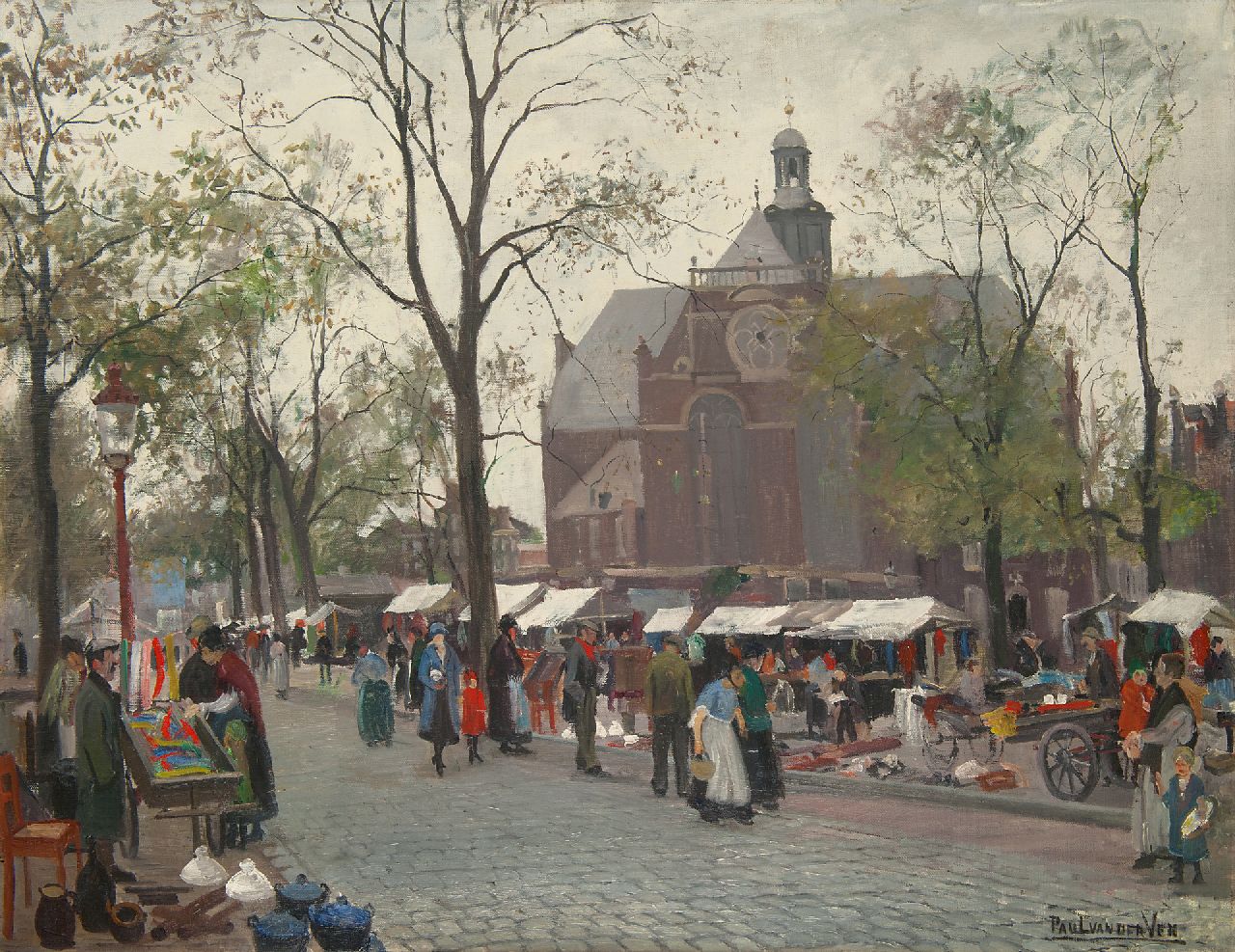 Paul van der Ven kunstwerk • schilderij • voorheen te koop De Noordermarkt, Amsterdam