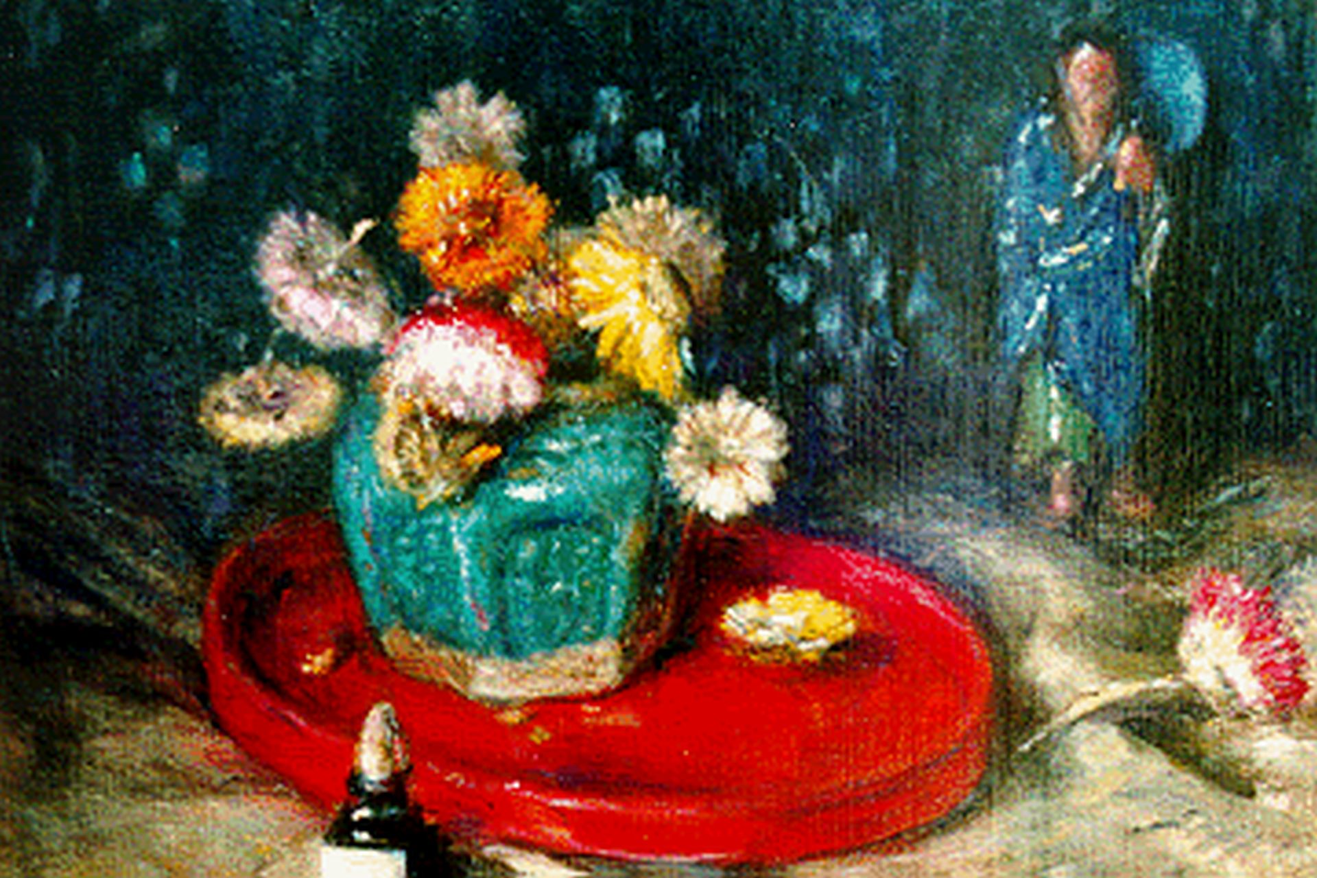 Paulus Casper Erkelens kunstwerk • schilderij • voorheen te koop Droogbloemen in een gemberpotje