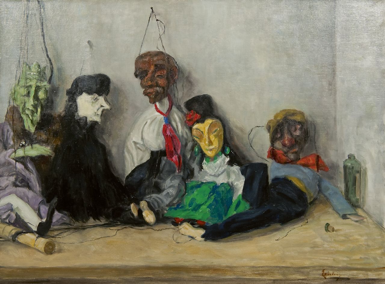 Paulus Casper Erkelens kunstwerk • schilderij • voorheen te koop Stilleven met marionetten