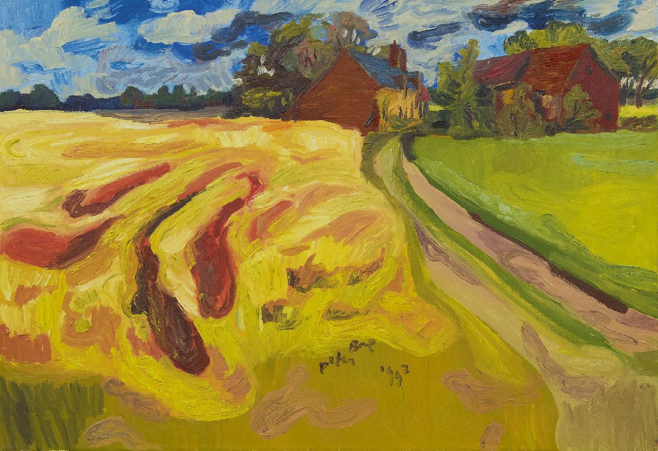 Peter Bol kunstwerk • schilderij • voorheen te koop Korenveld met boerderijen