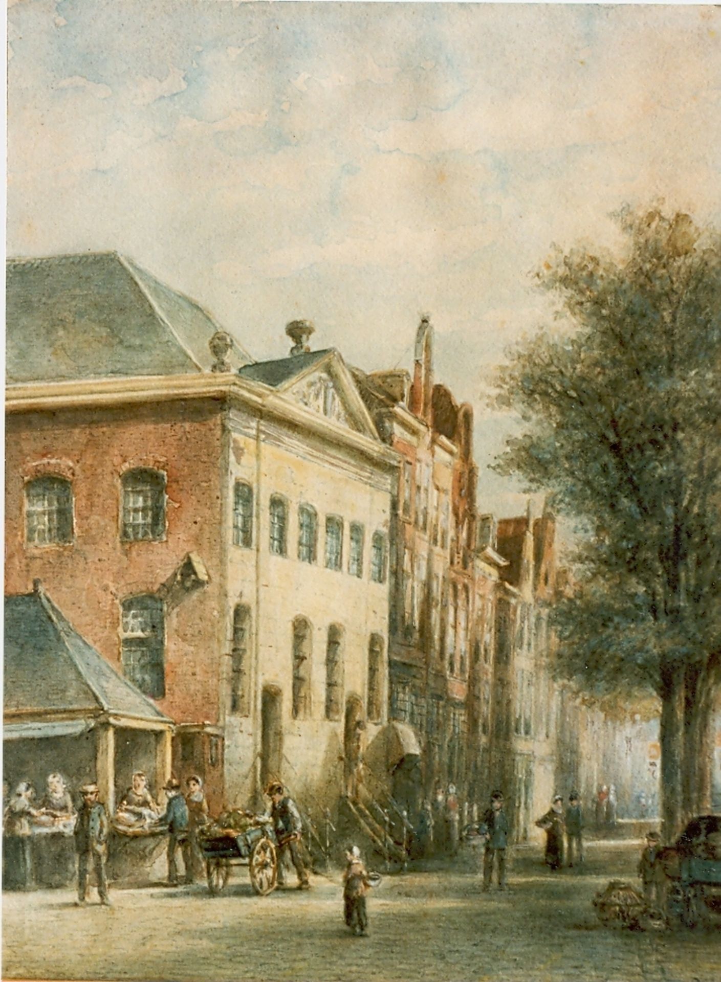 Petrus Gerardus Vertin kunstwerk • aquarel • tekening • voorheen te koop Figuren bij een marktstalletje