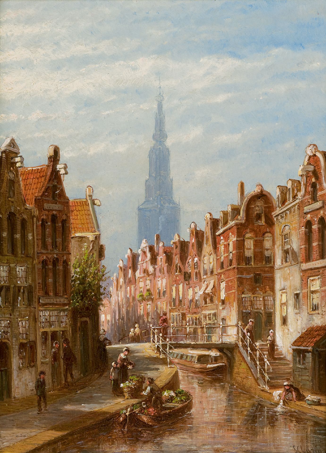 Petrus Gerardus Vertin kunstwerk • schilderij • voorheen te koop Bedrijvigheid aan een stadsgracht