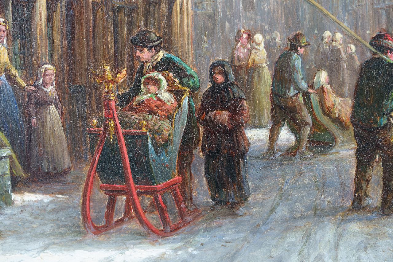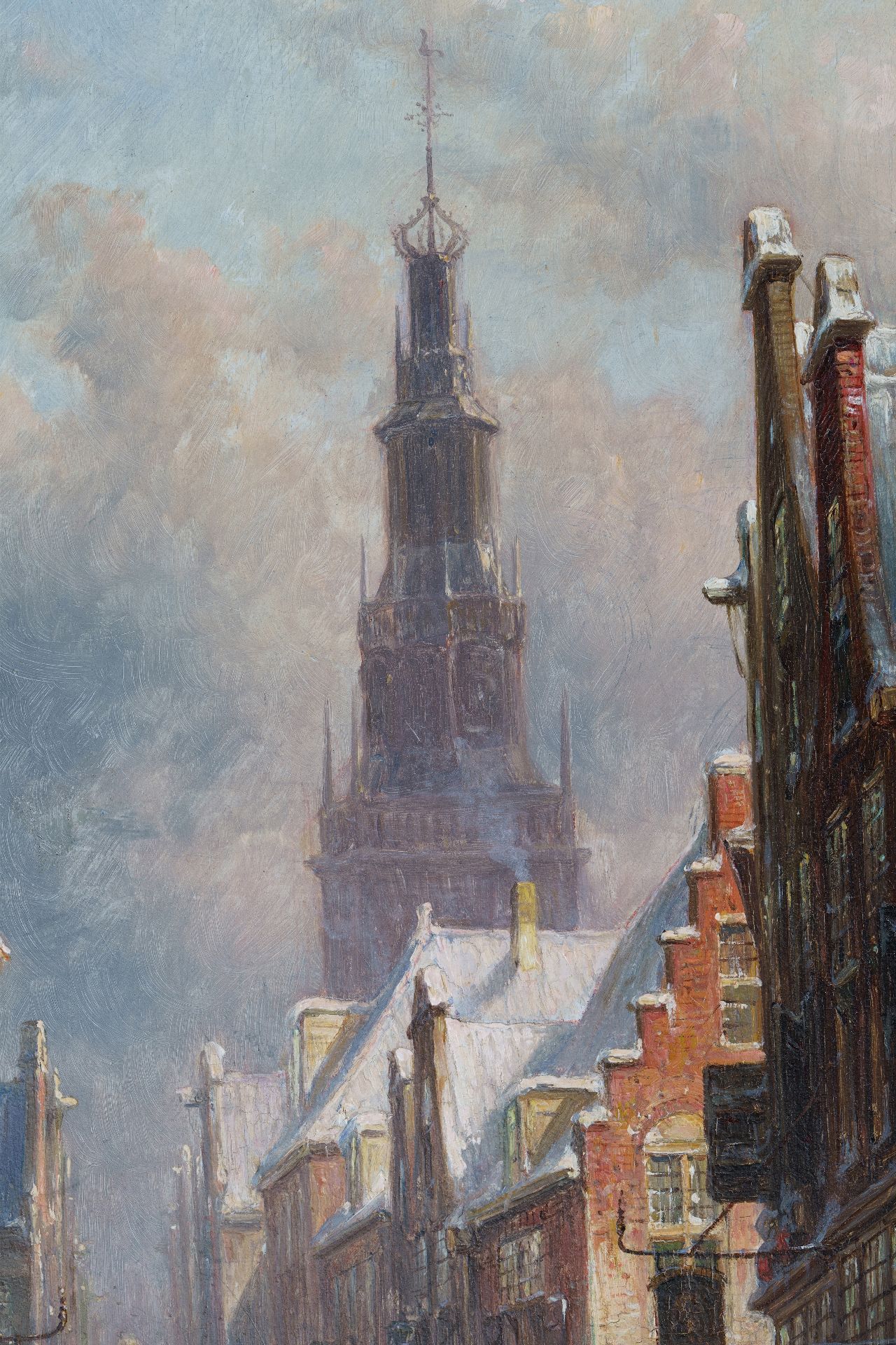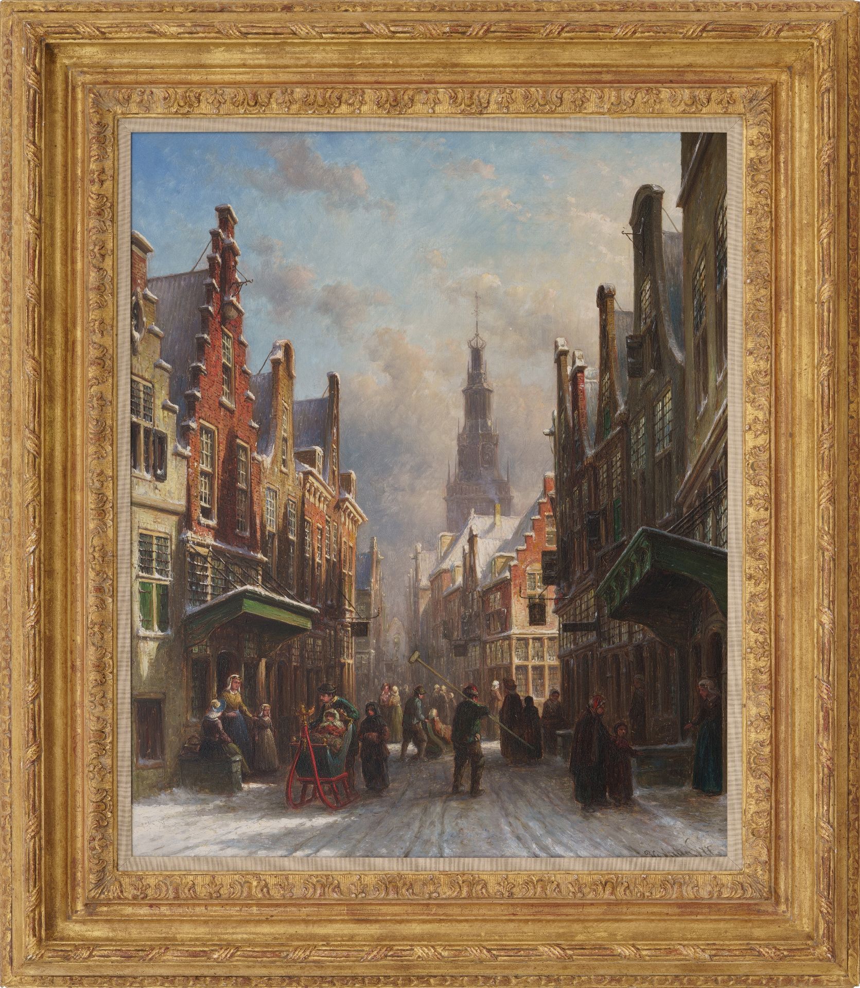 Petrus Gerardus Vertin kunstwerk • schilderij • voorheen te koop Besneeuwd stadsgezicht met figuren