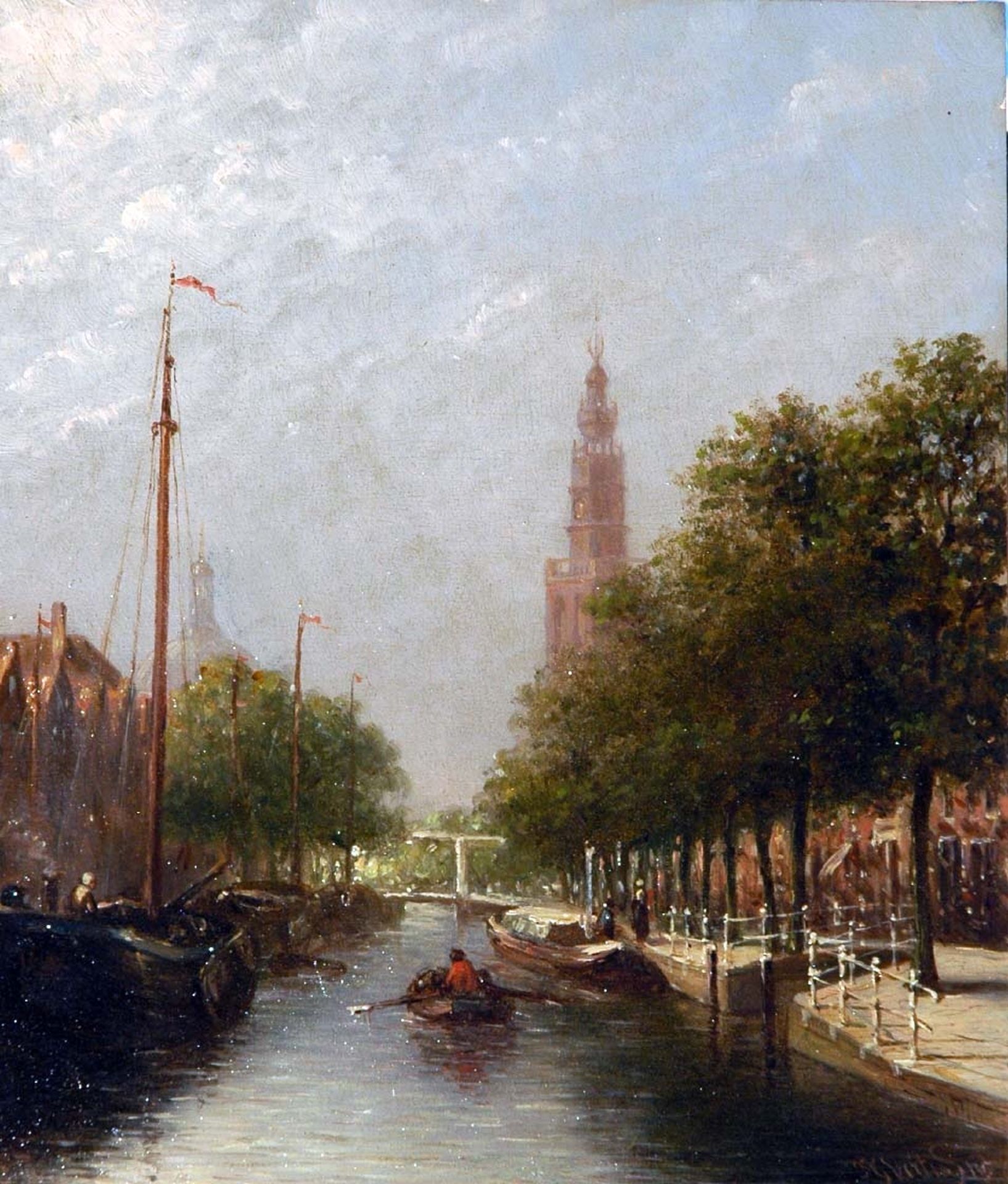 Petrus Gerardus Vertin kunstwerk • schilderij • voorheen te koop Fantasiegezicht met stadsgracht in Leiden